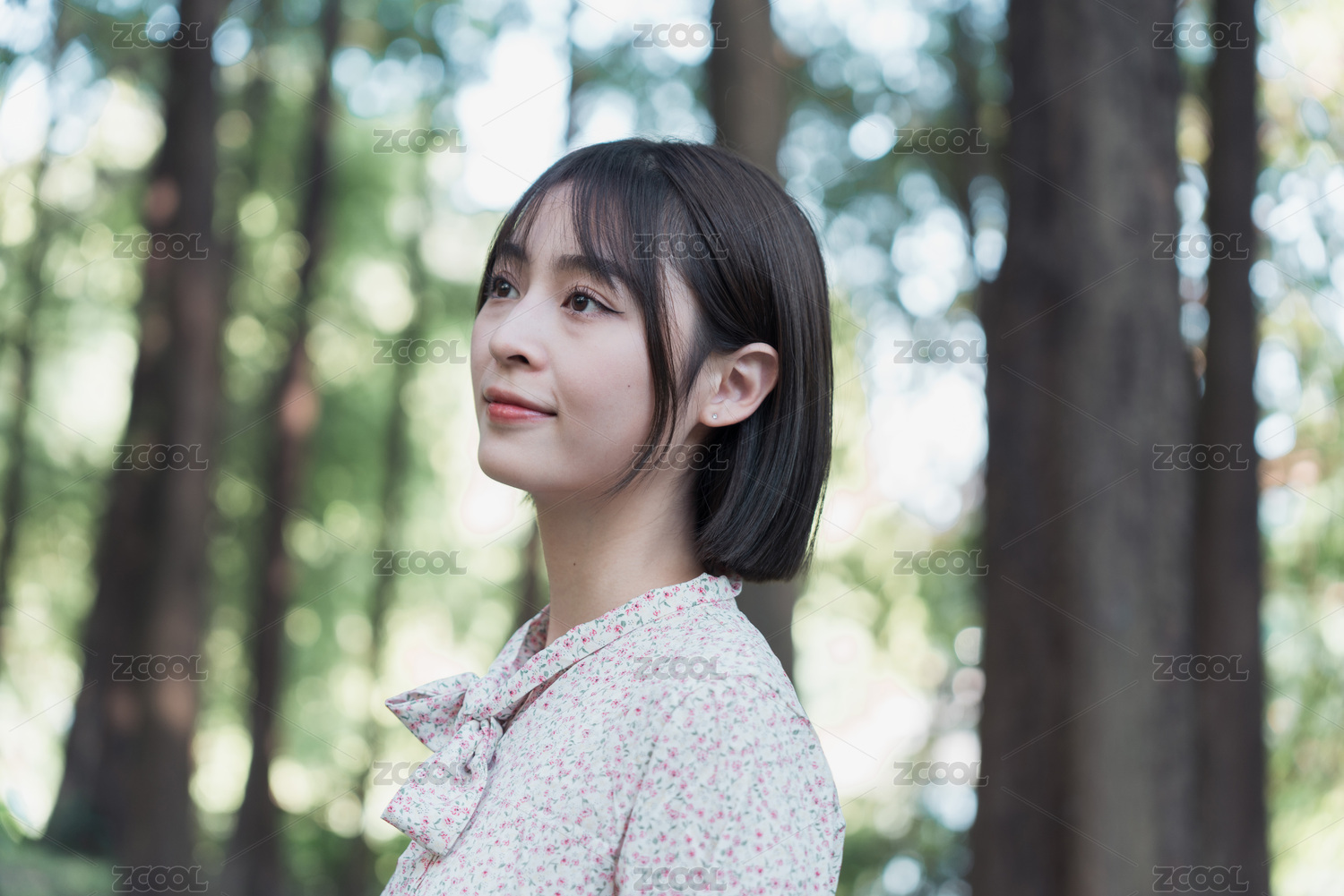 亚裔,女性,少女,旅游,旅行,公园,森林,树林,自然,生态