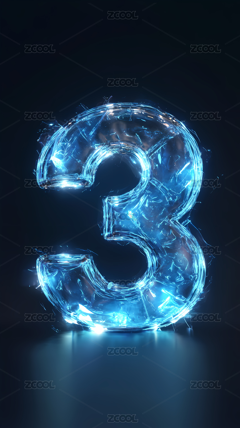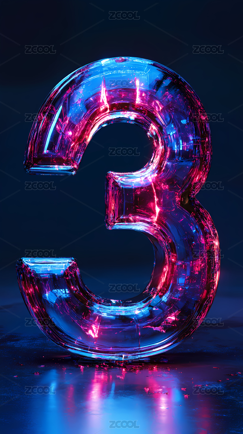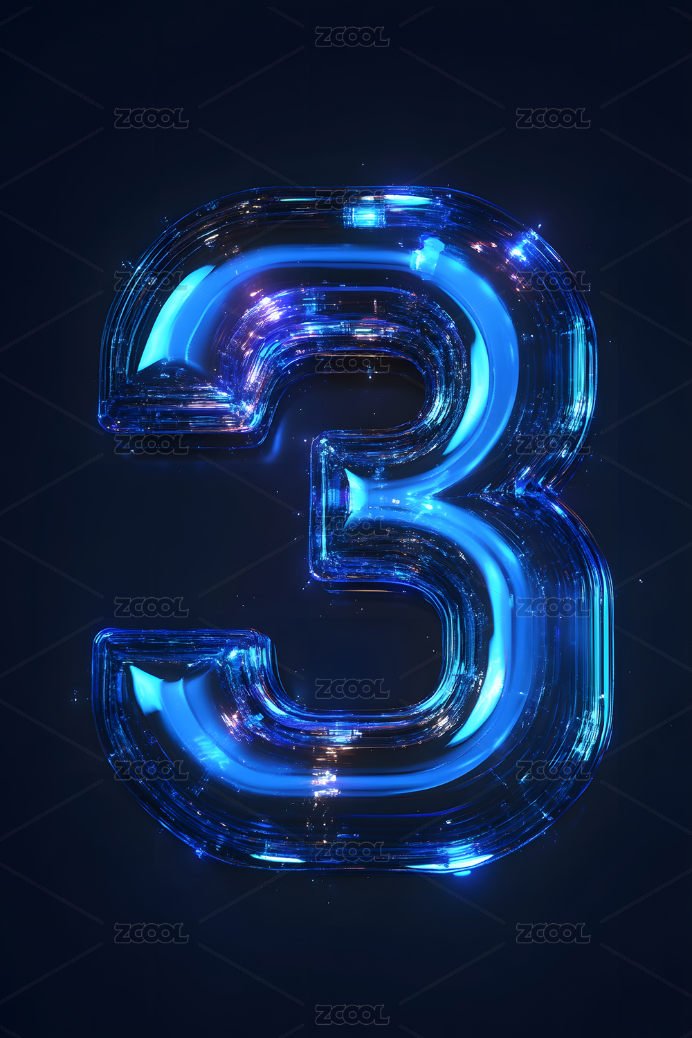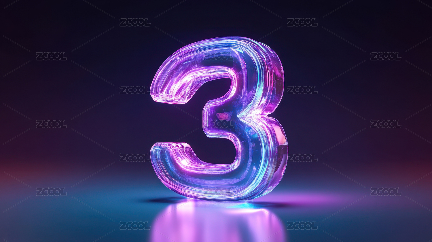 3,紫色,透明,发光,数字,蓝色,背景,插画,特写,设计