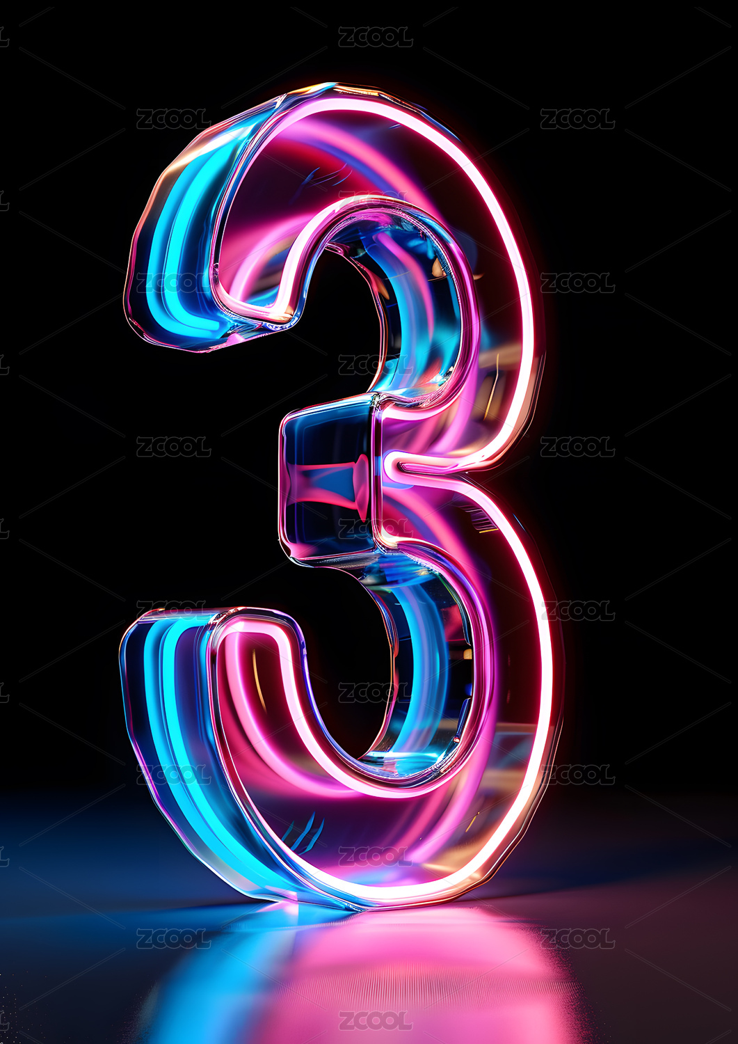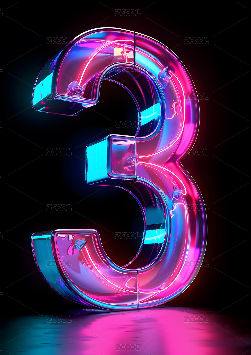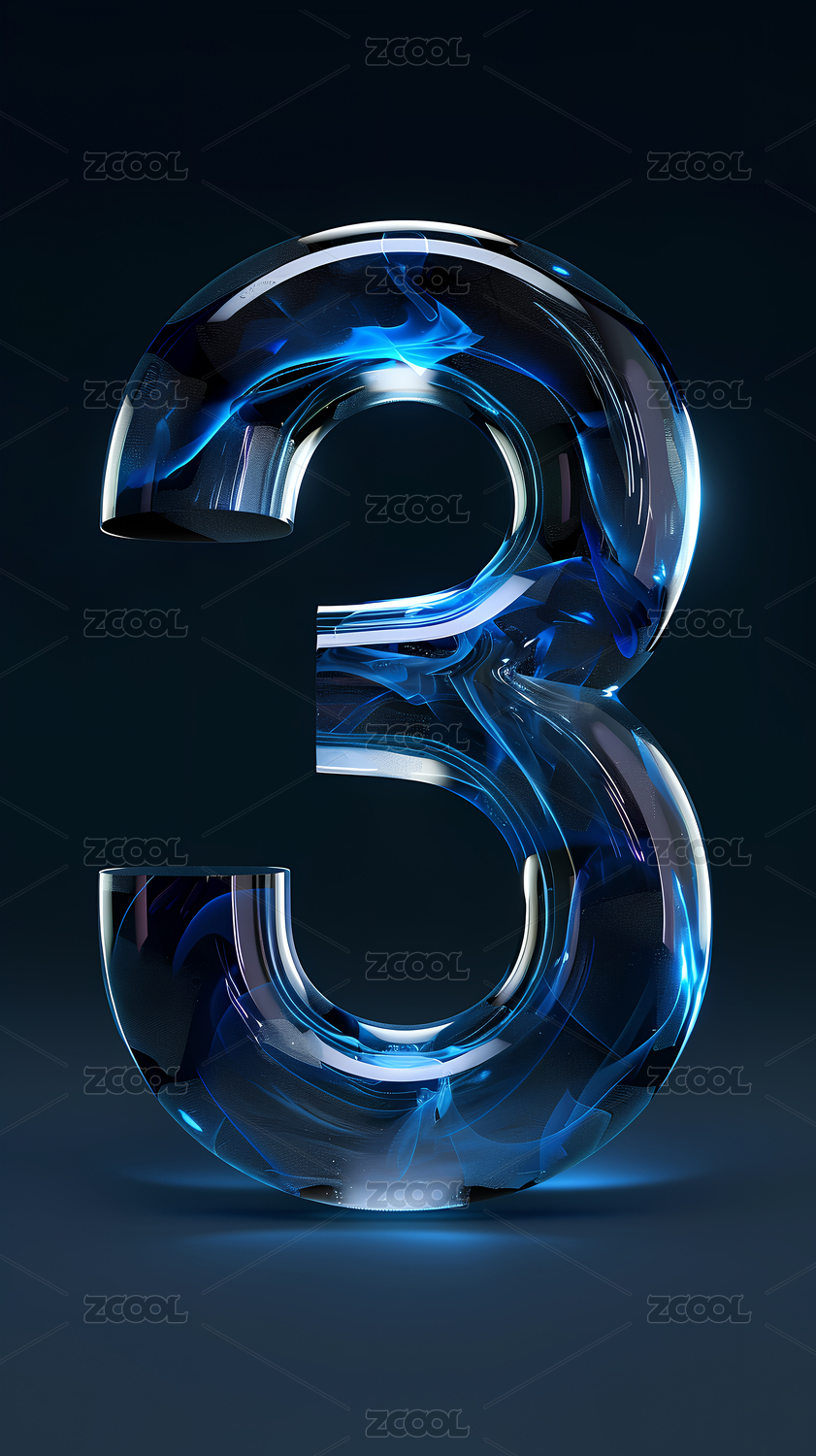 3,紫色,透明,发光,数字,蓝色,背景,插画,特写,设计