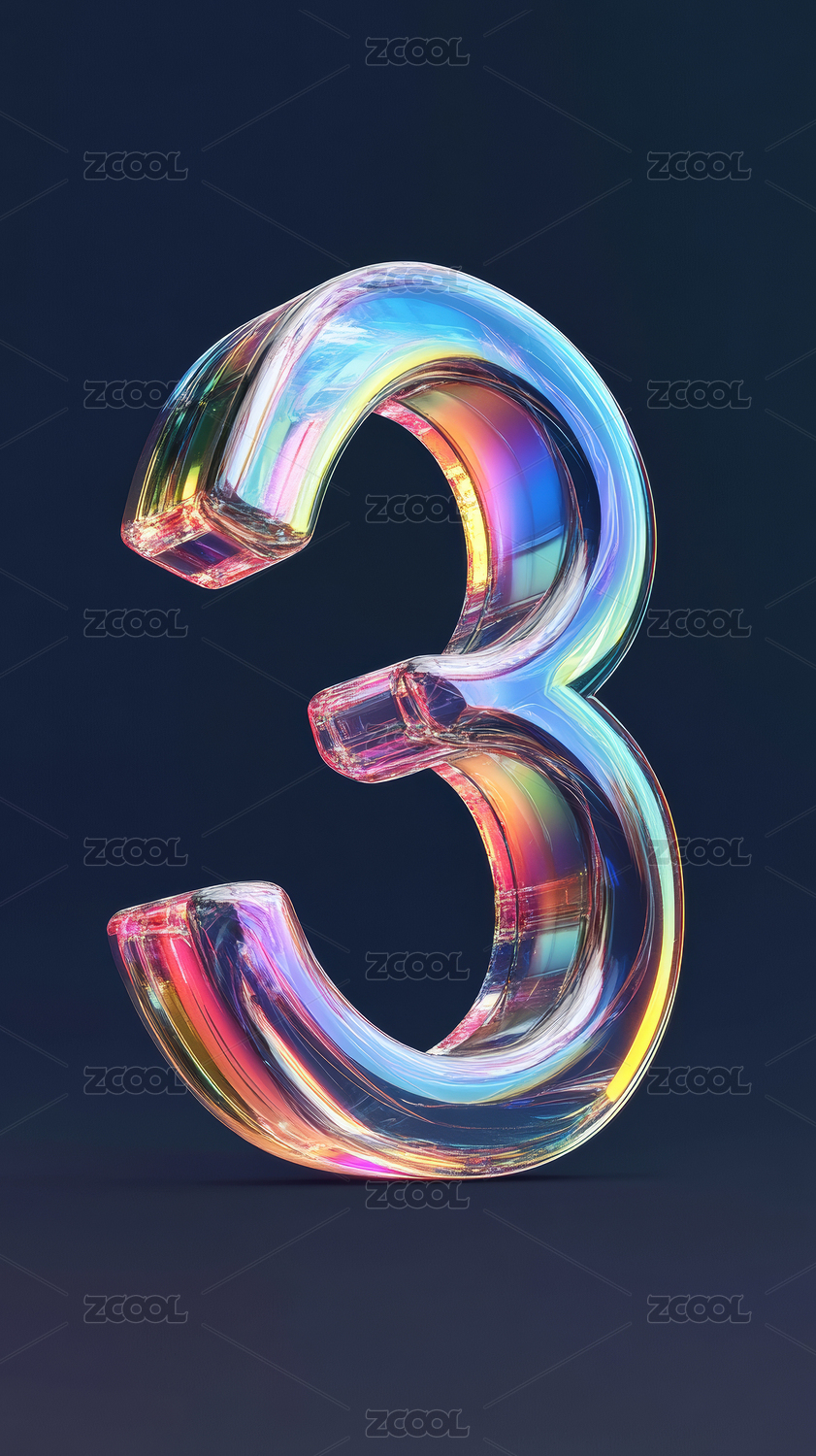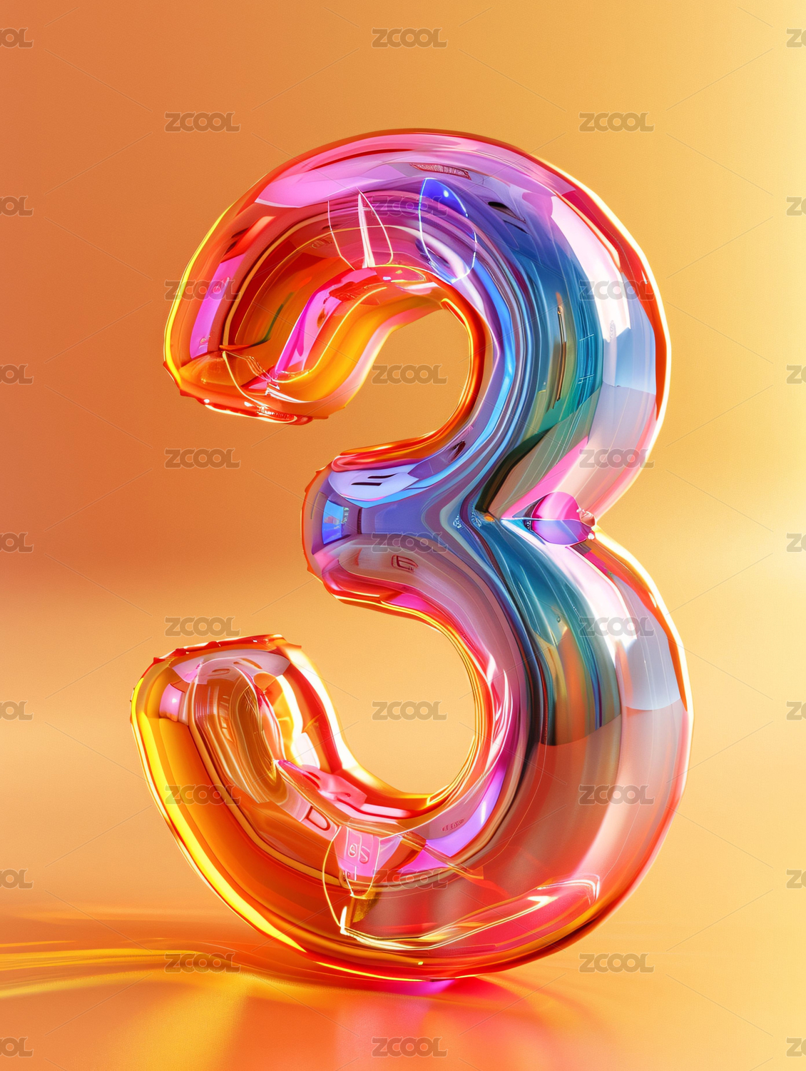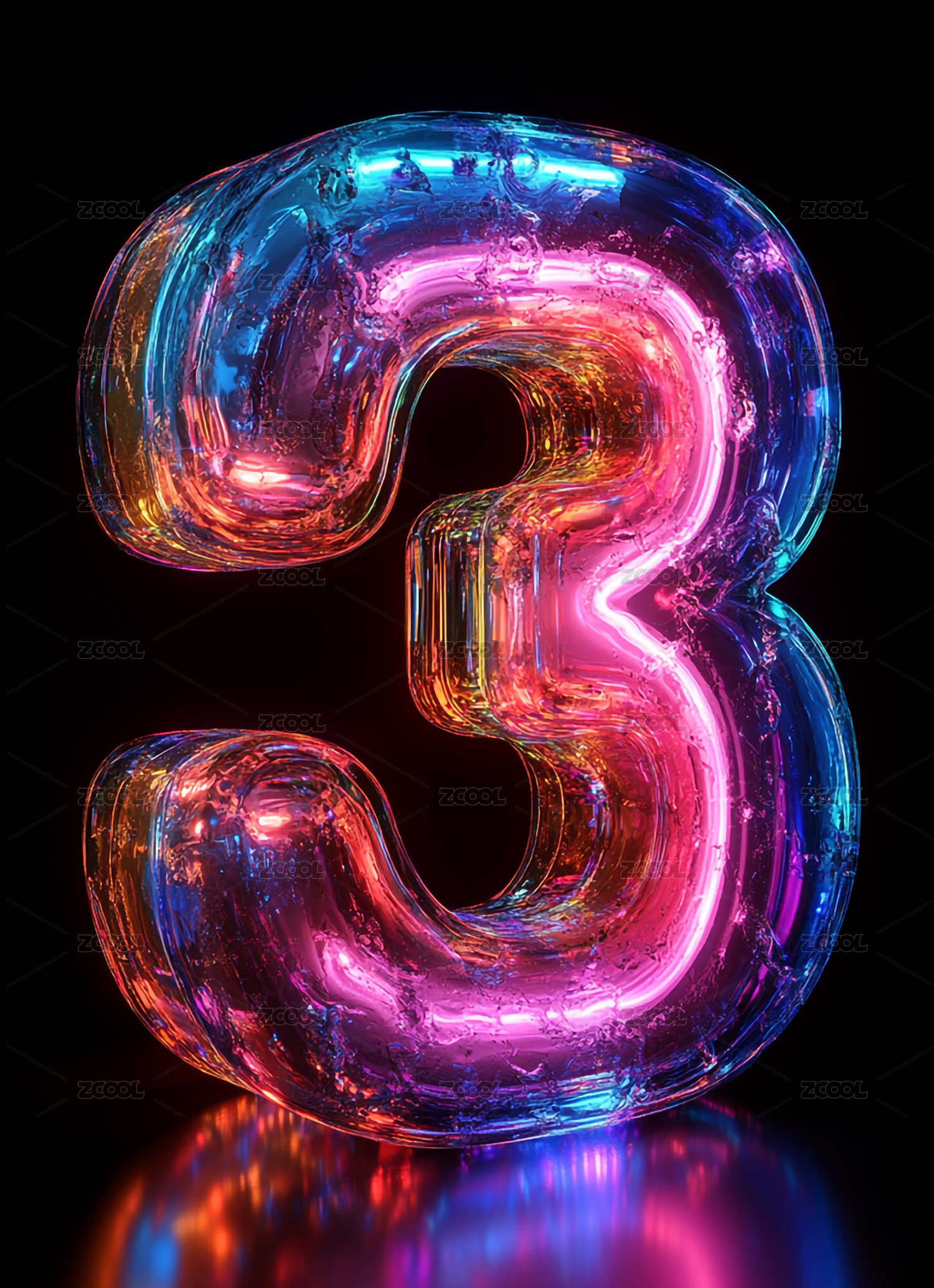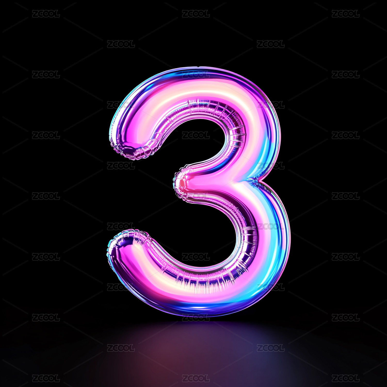 3,紫色,透明,发光,数字,蓝色,背景,插画,特写,设计