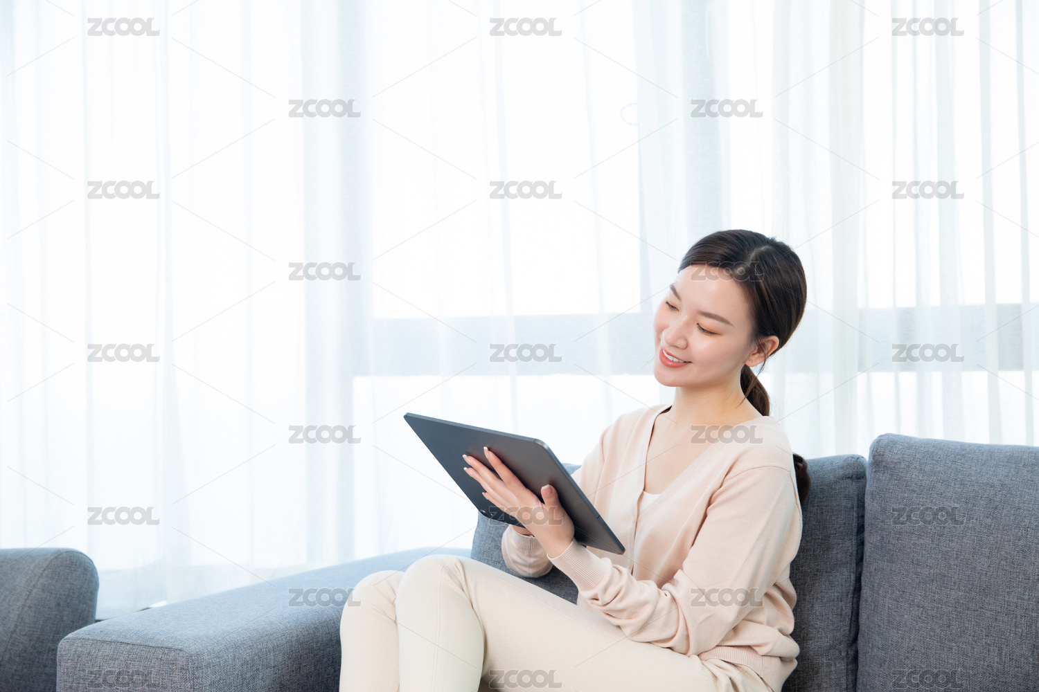 居家女性沙发使用平板