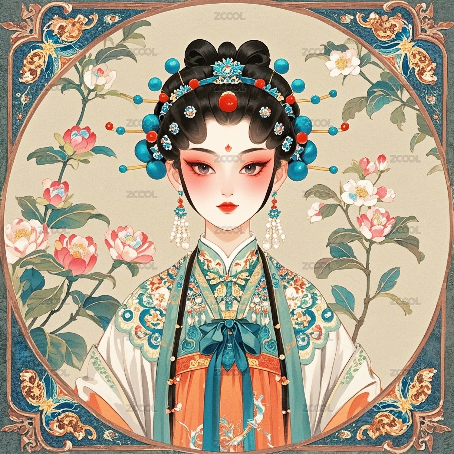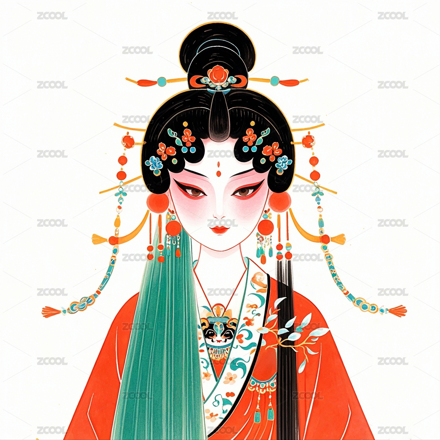 插画,中国画,水墨画,国潮,中国风,复古,古典风格,古风,蝴蝶,新娘