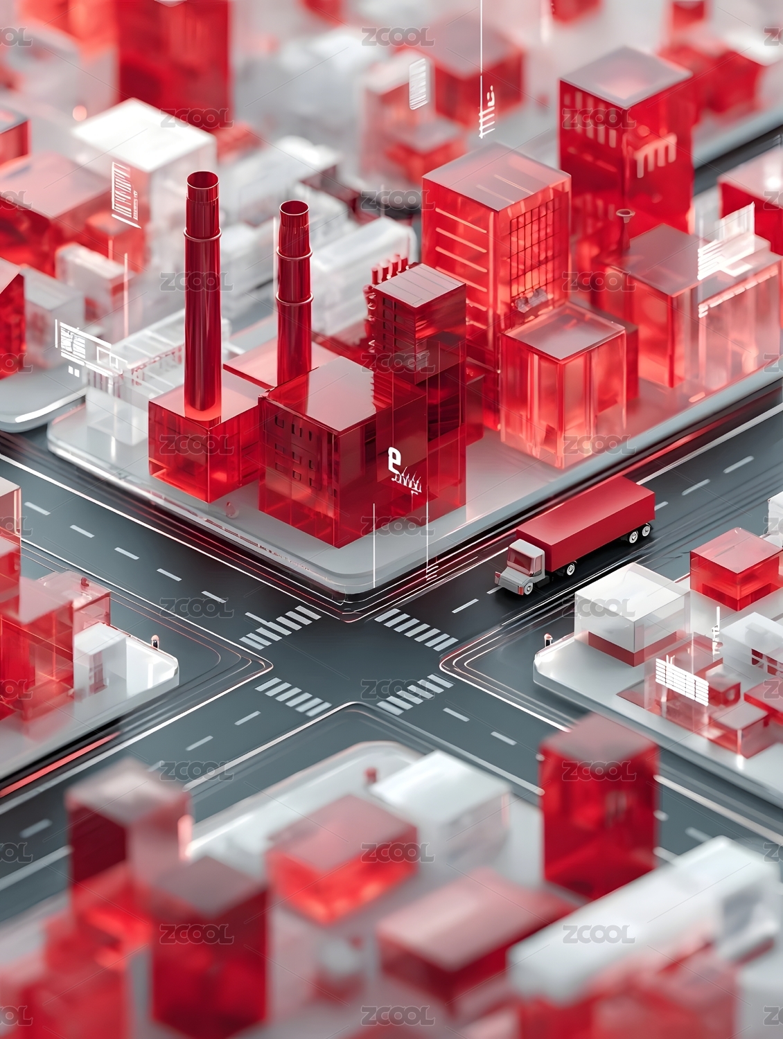 红色透明城市模型科技感