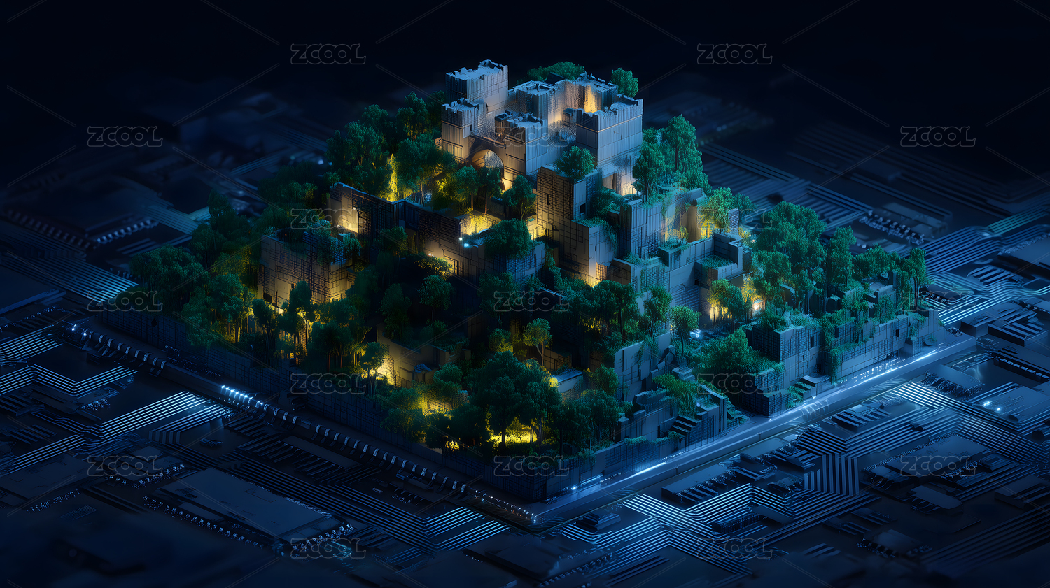 科技芯片蓝调城市科技场景