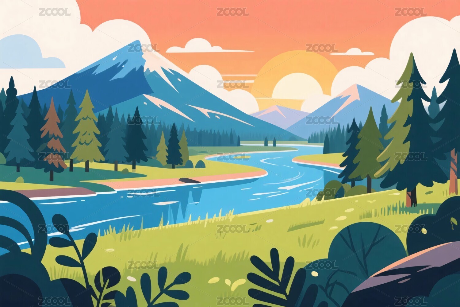 矢量,卡通,渐变,扁平,插画,插图,夏季,夏天,清新,人