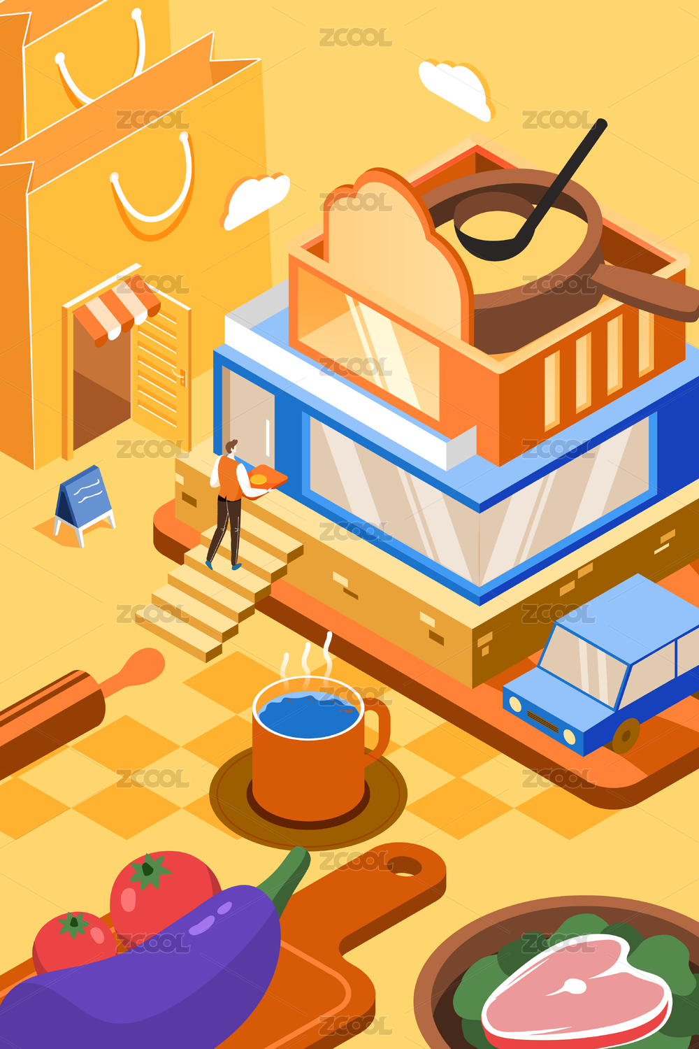 2.5D等距美食居家矢量插画
