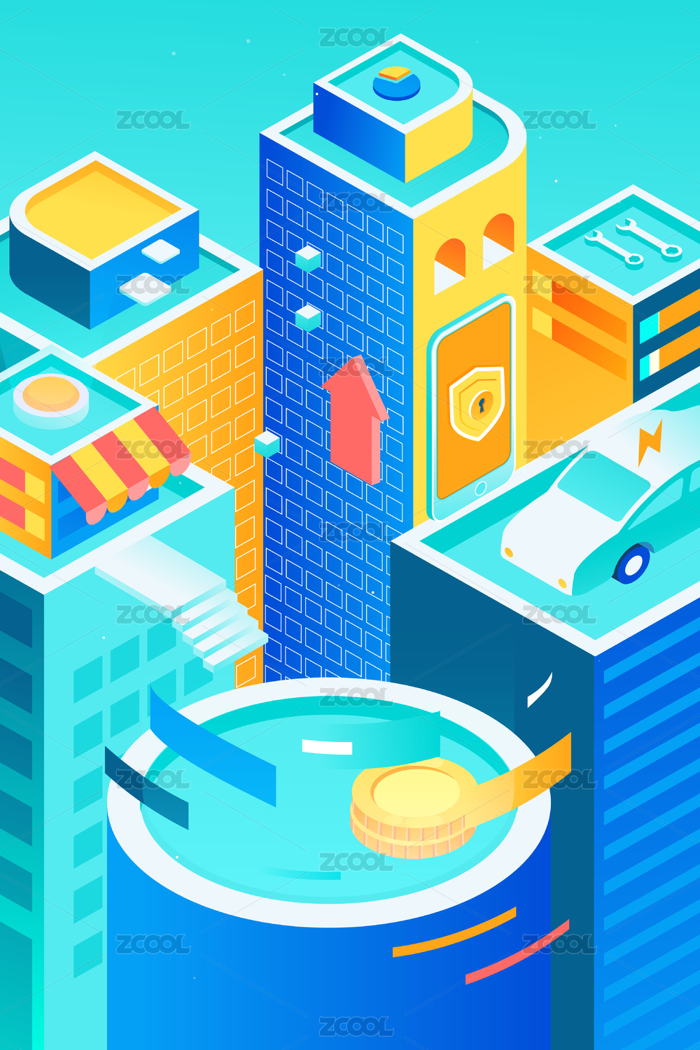 等距城市消费电商矢量插画