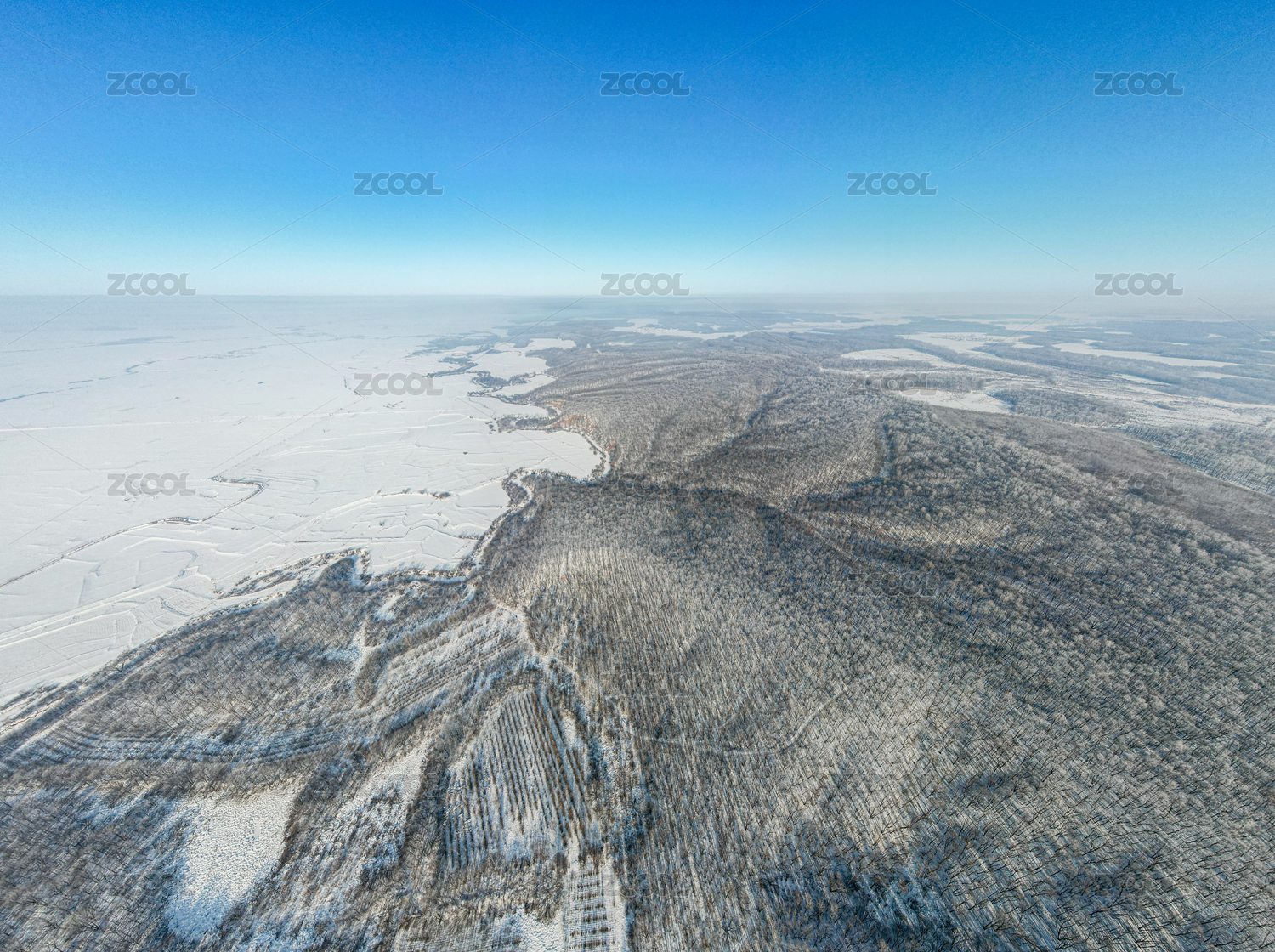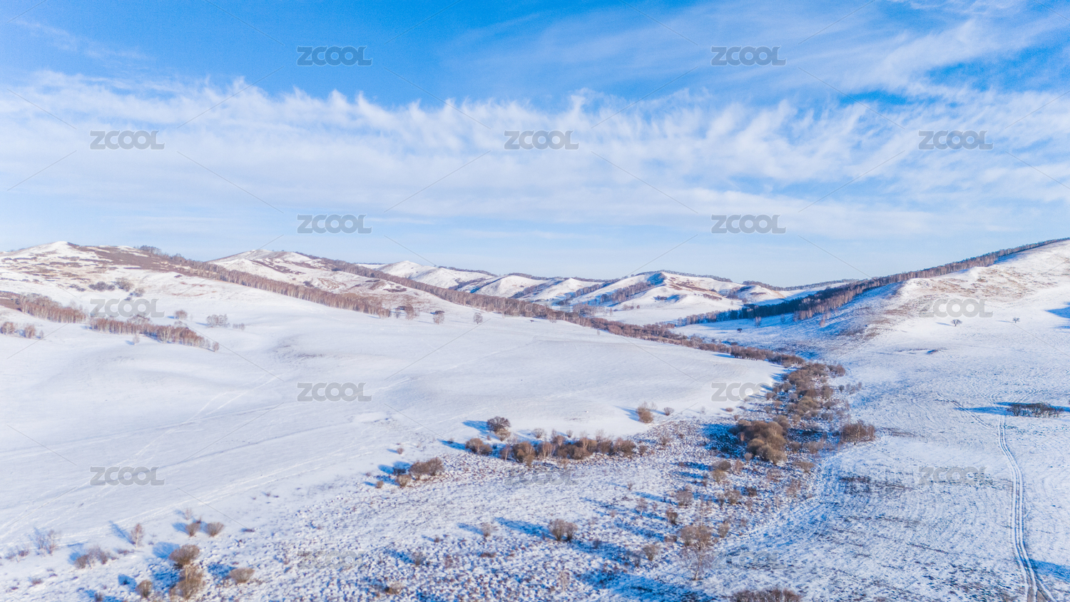 冬季内蒙古乌兰布统蓝天白云雪景航拍