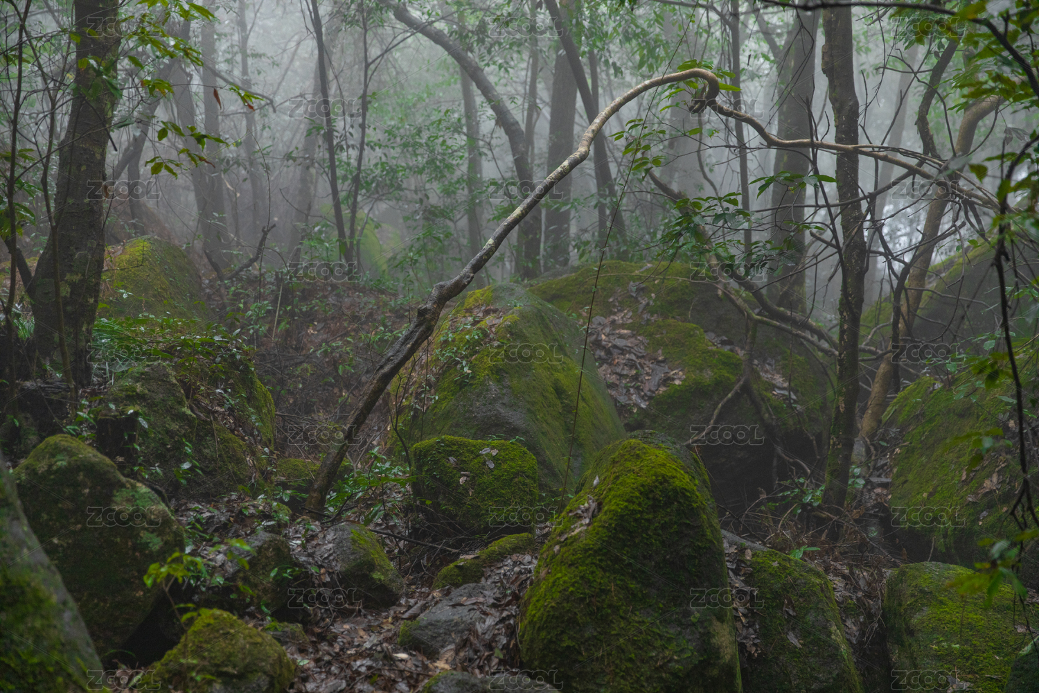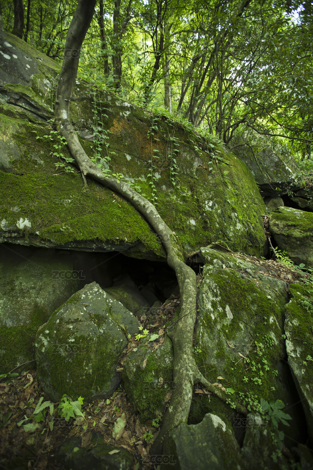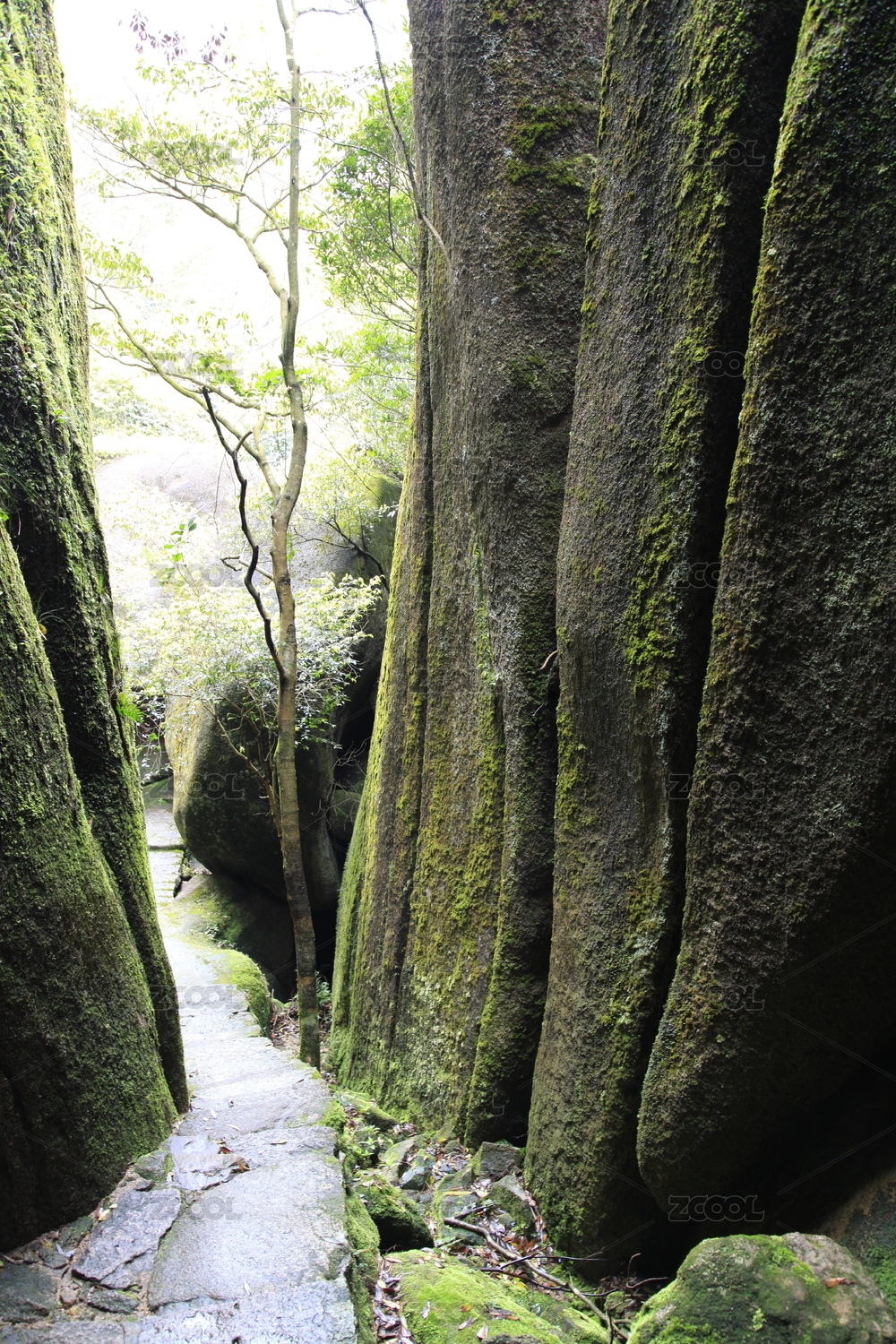 深山老林中巨型石头铺就的蜿蜒崎岖的山路
