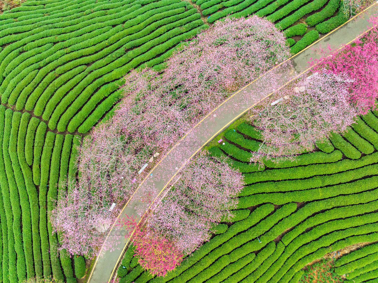 福建省龙岩市永福镇台品樱花茶园航拍风光