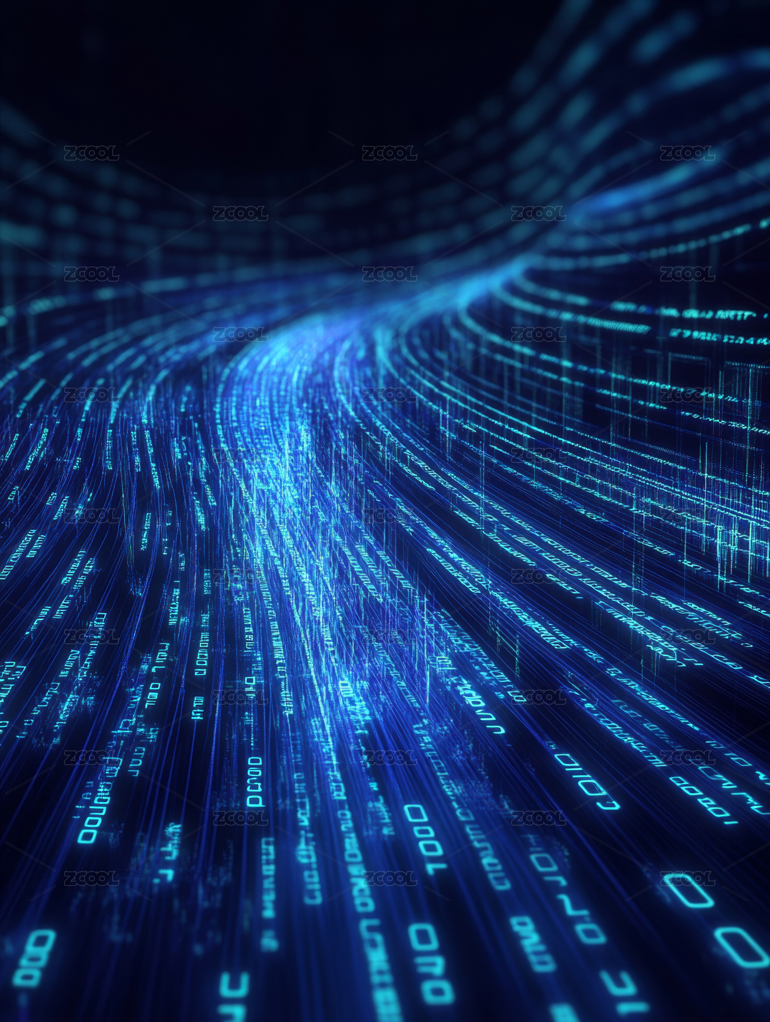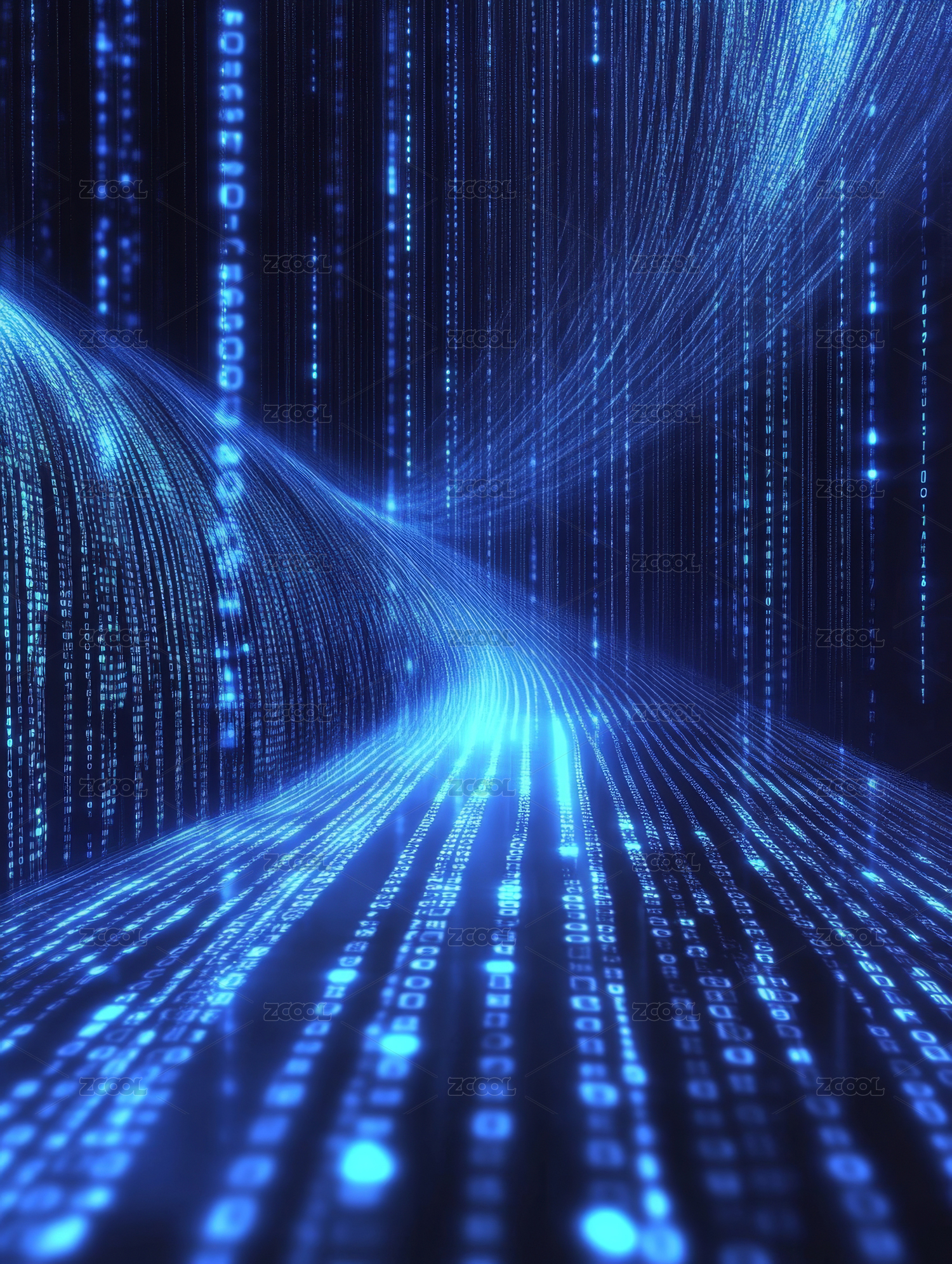 蓝色科技数据流光效背景图