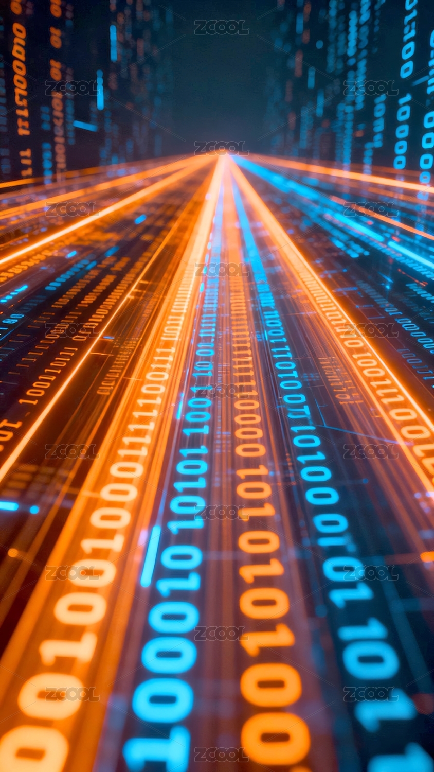 抽象蓝色二进制代码数据流科技商务主题背景