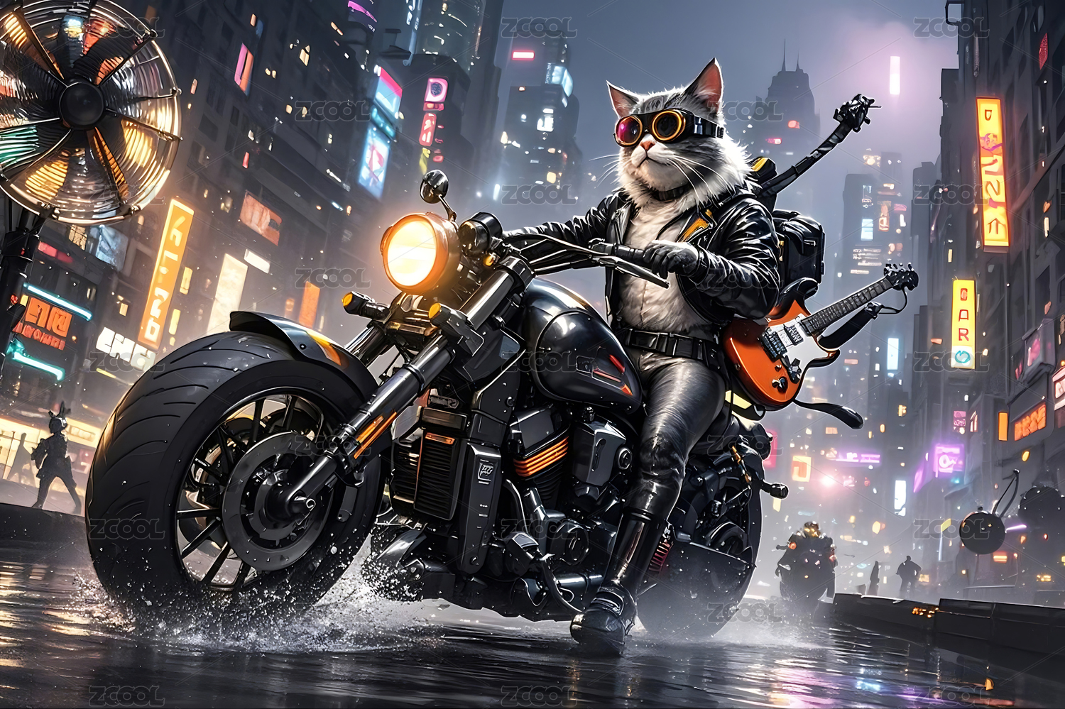 穿衣服,街景,秋天,摩托车,AIGC,墨镜,酷,夹克衫