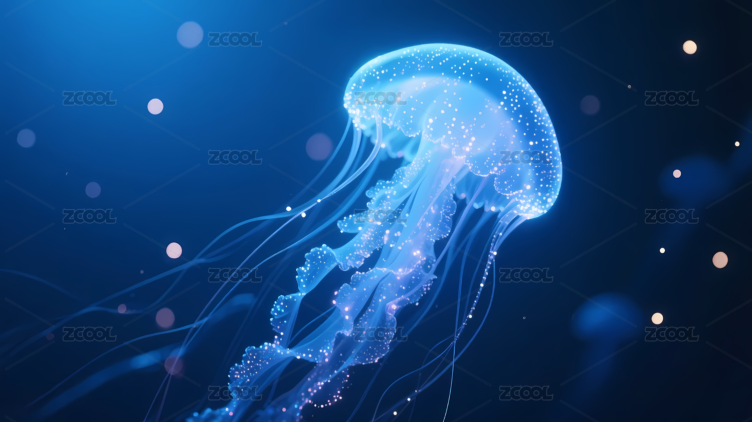 蓝色梦幻水母特写海洋生物海底世界生物背景