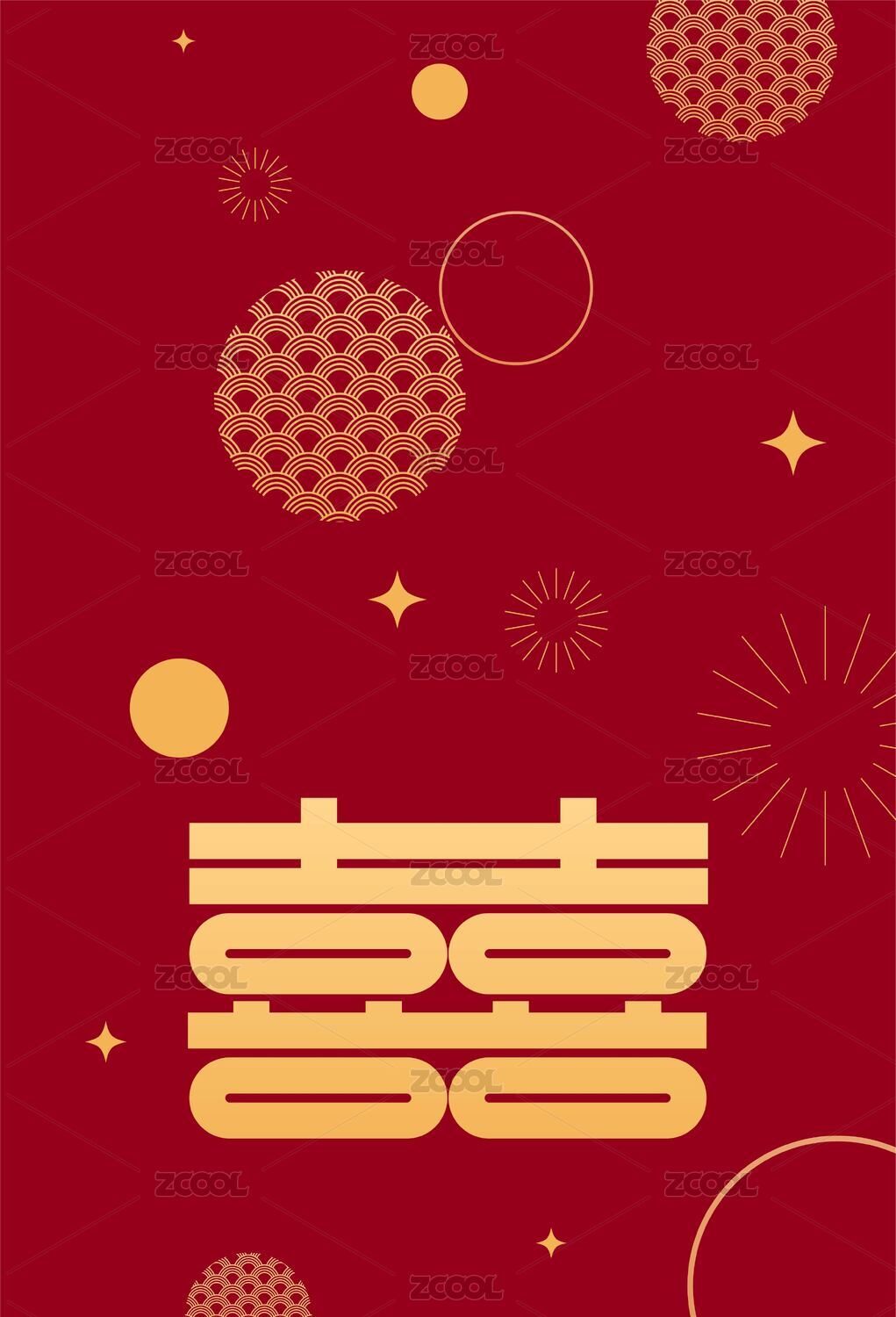 扁平风金色囍字插画