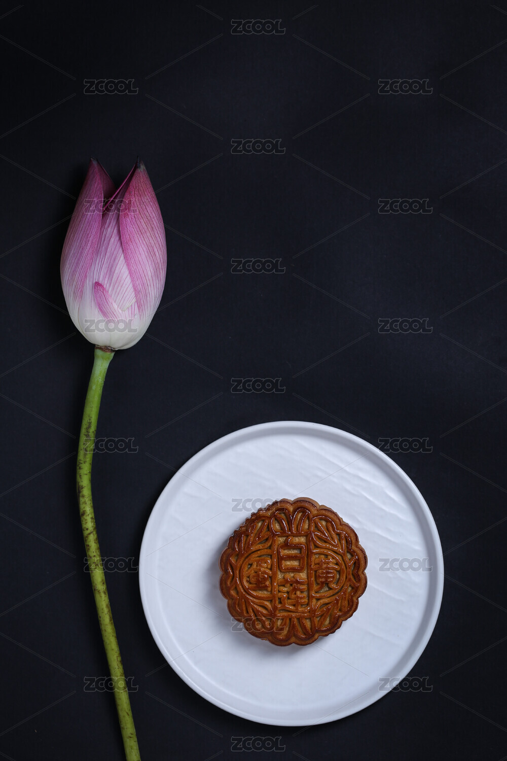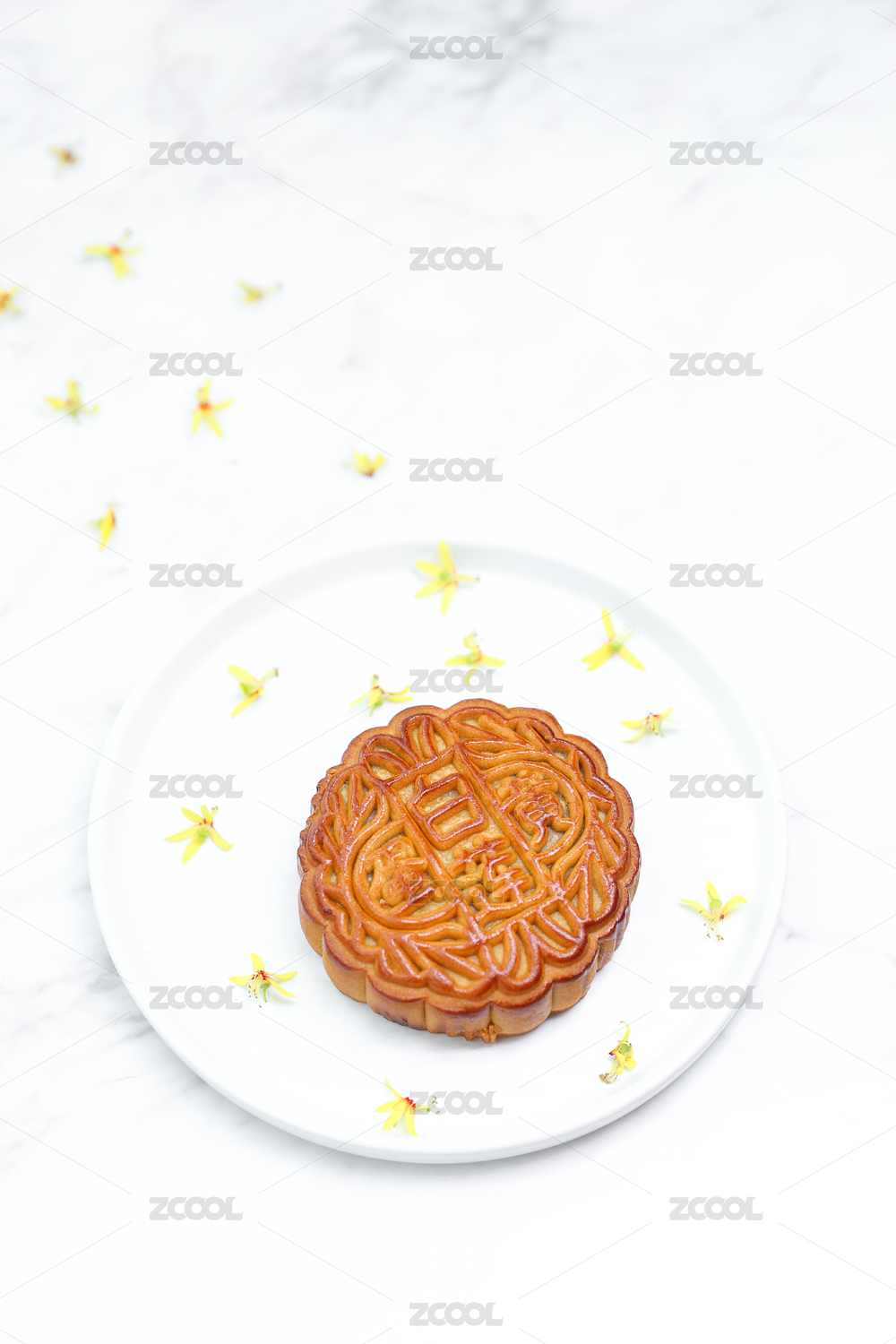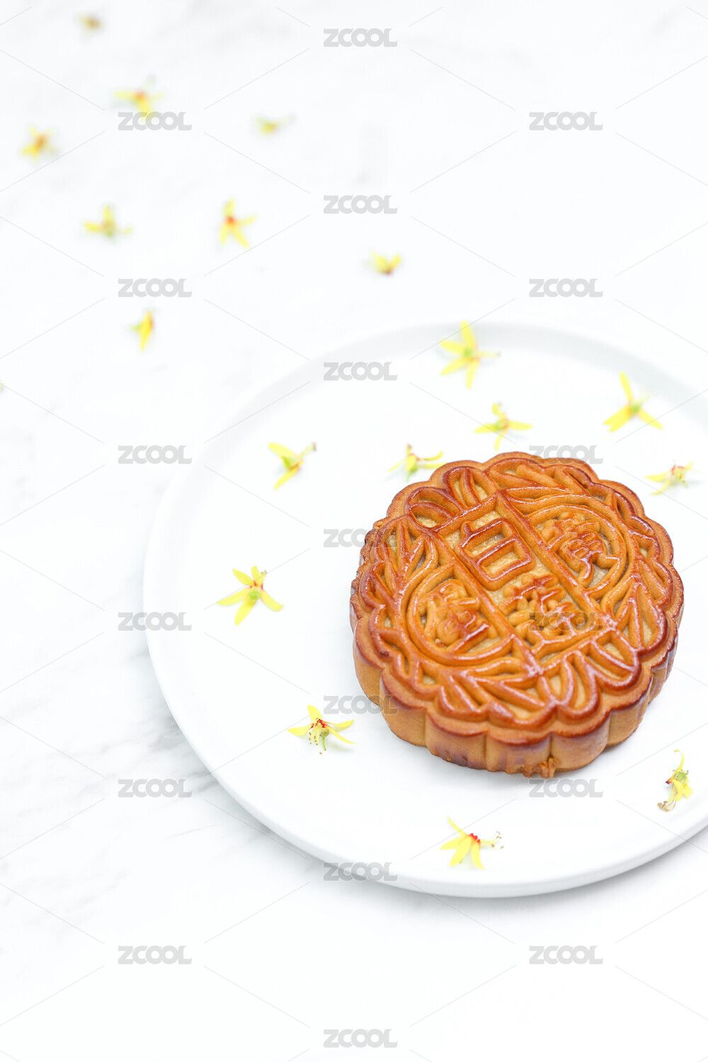 广式蛋黄莲蓉月饼和黄色木樨花桂花