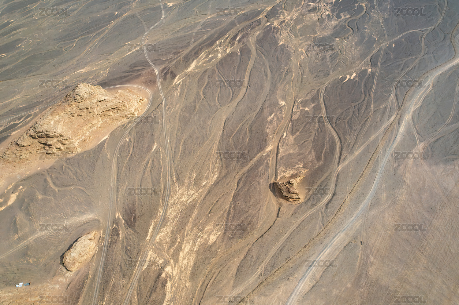 中国甘肃酒泉阿克塞戈壁中的柳格高速航拍图