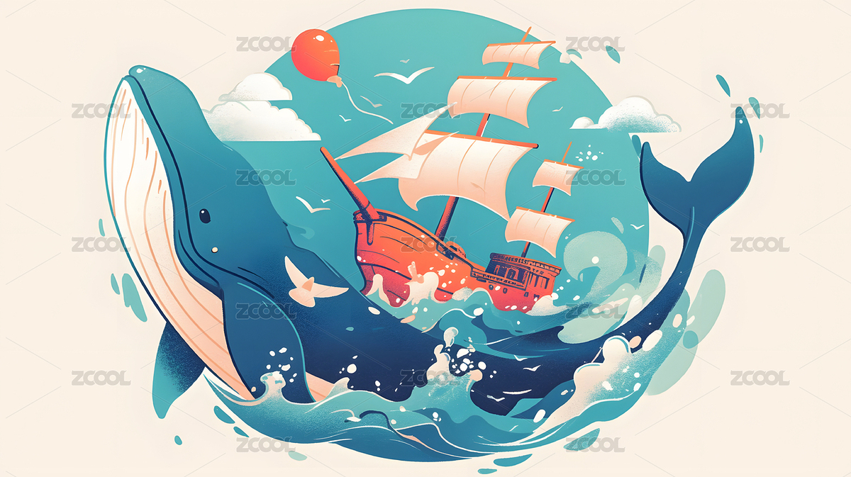 鲸鱼,鱼,船,大船,小船,海洋,动物,海面,可爱,卡通