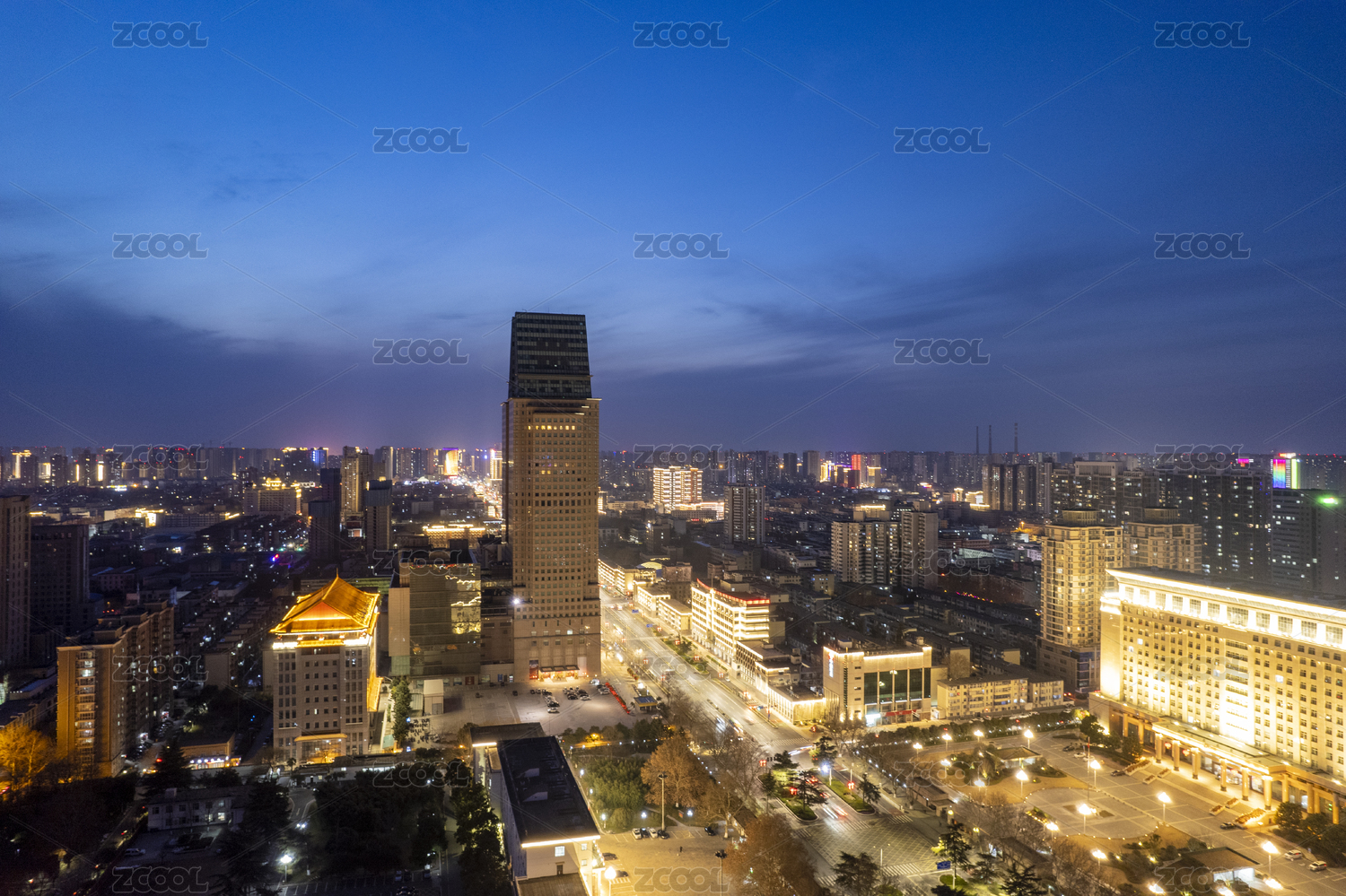航拍郑州绿地双子塔夜景城市天际线都市地标