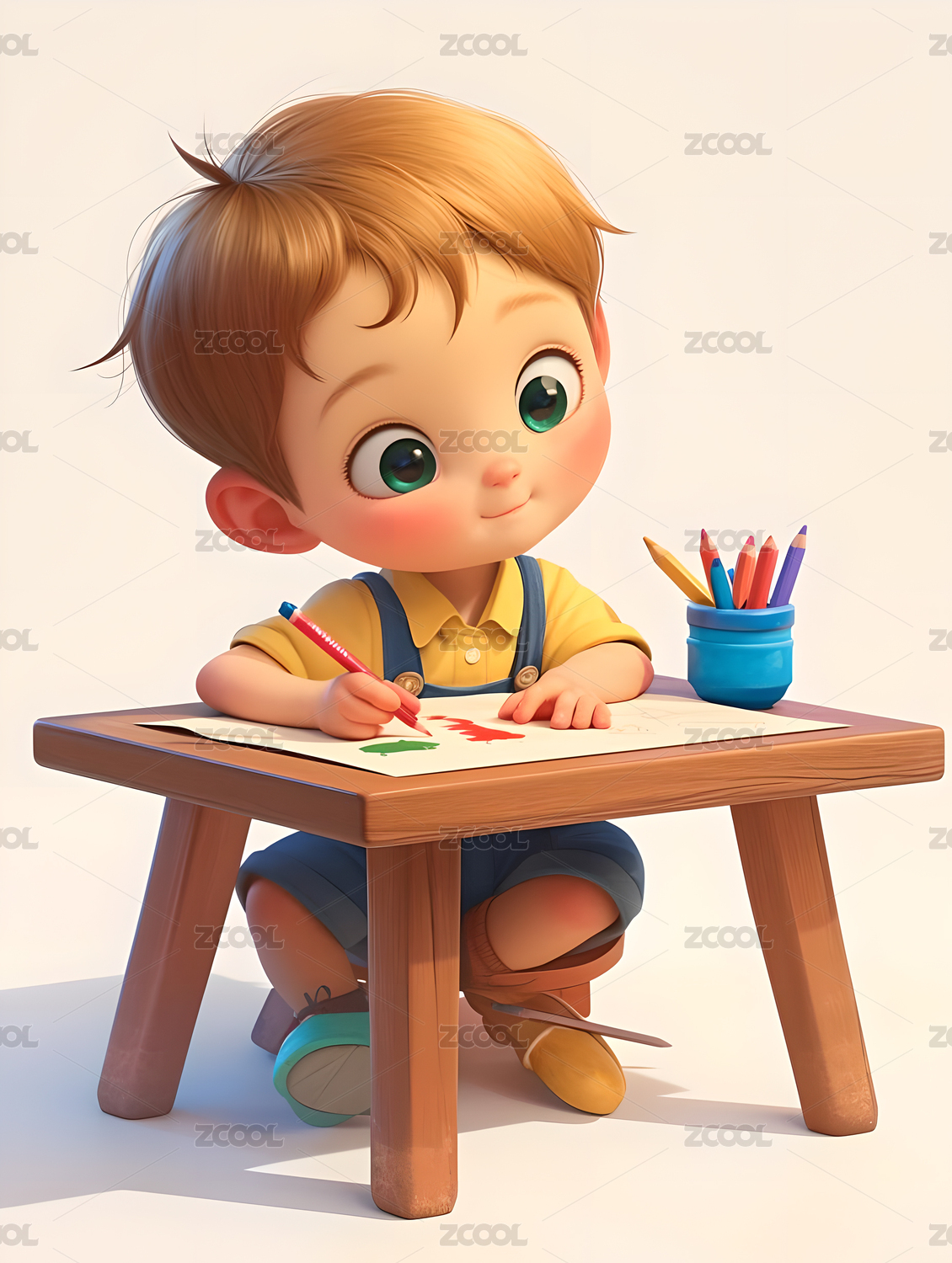 3D渲染的卡通绘画少儿
