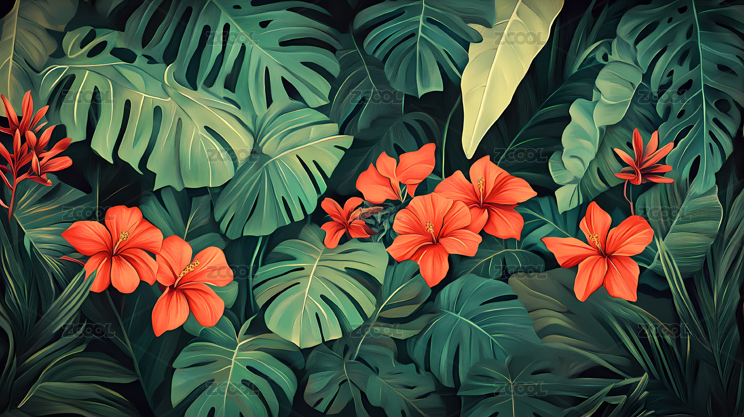 植物叶子绿色自然图案抽象树叶壁纸插画背景