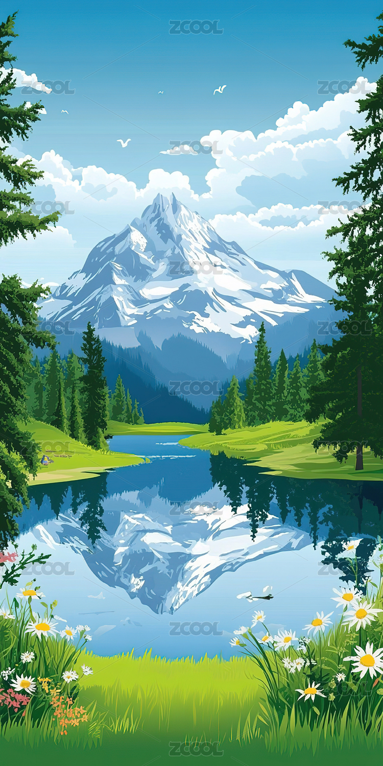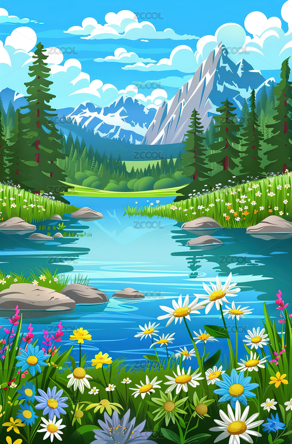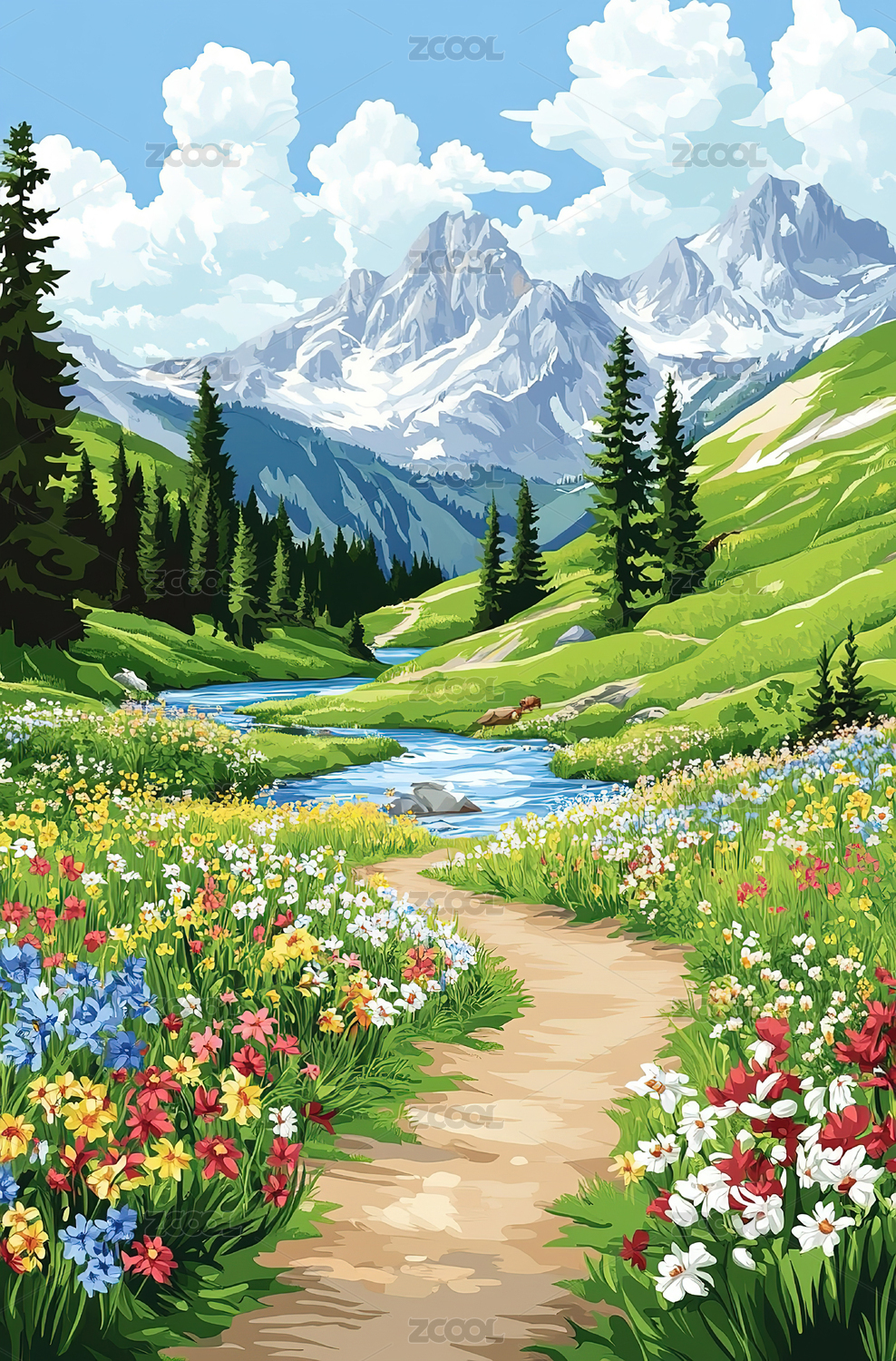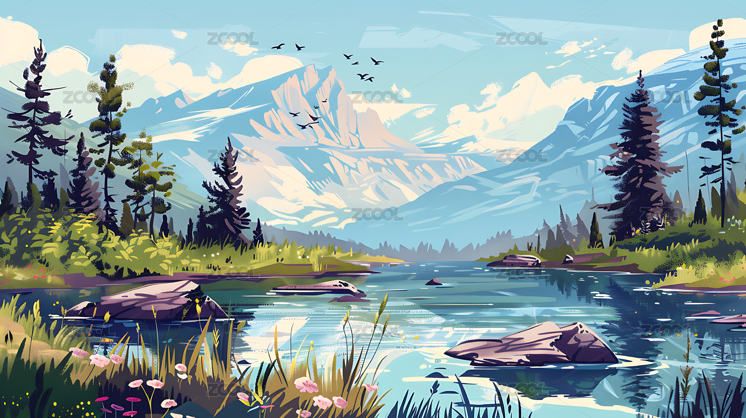 扁平,趣味,插画,彩色,风景,有趣,植物,海报