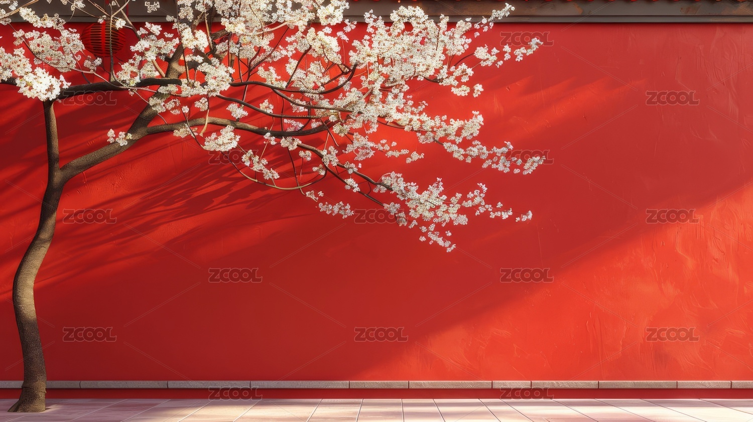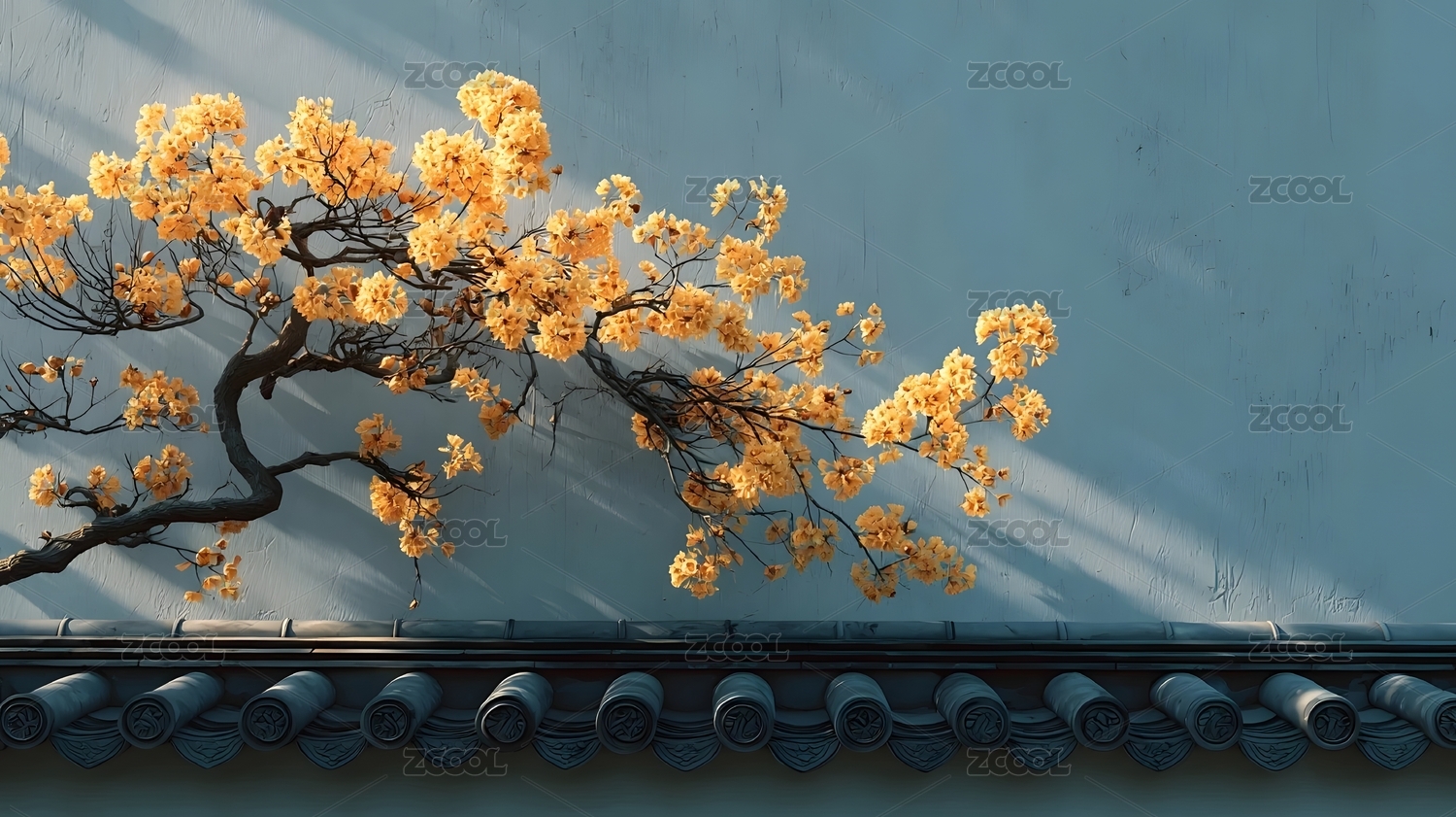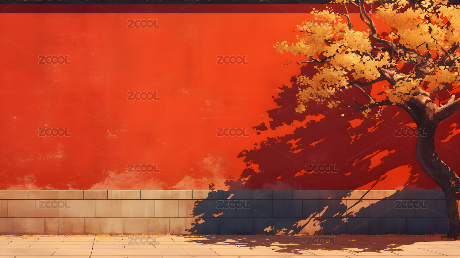 国风,红墙,黑瓦,银杏树,秋天,背景,素材