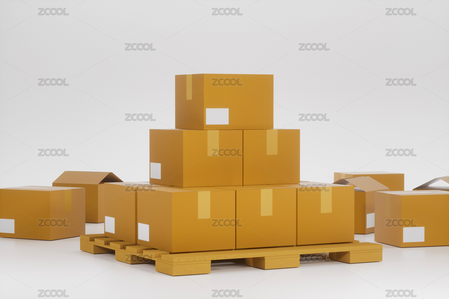 堆叠的包装箱 3D渲染
