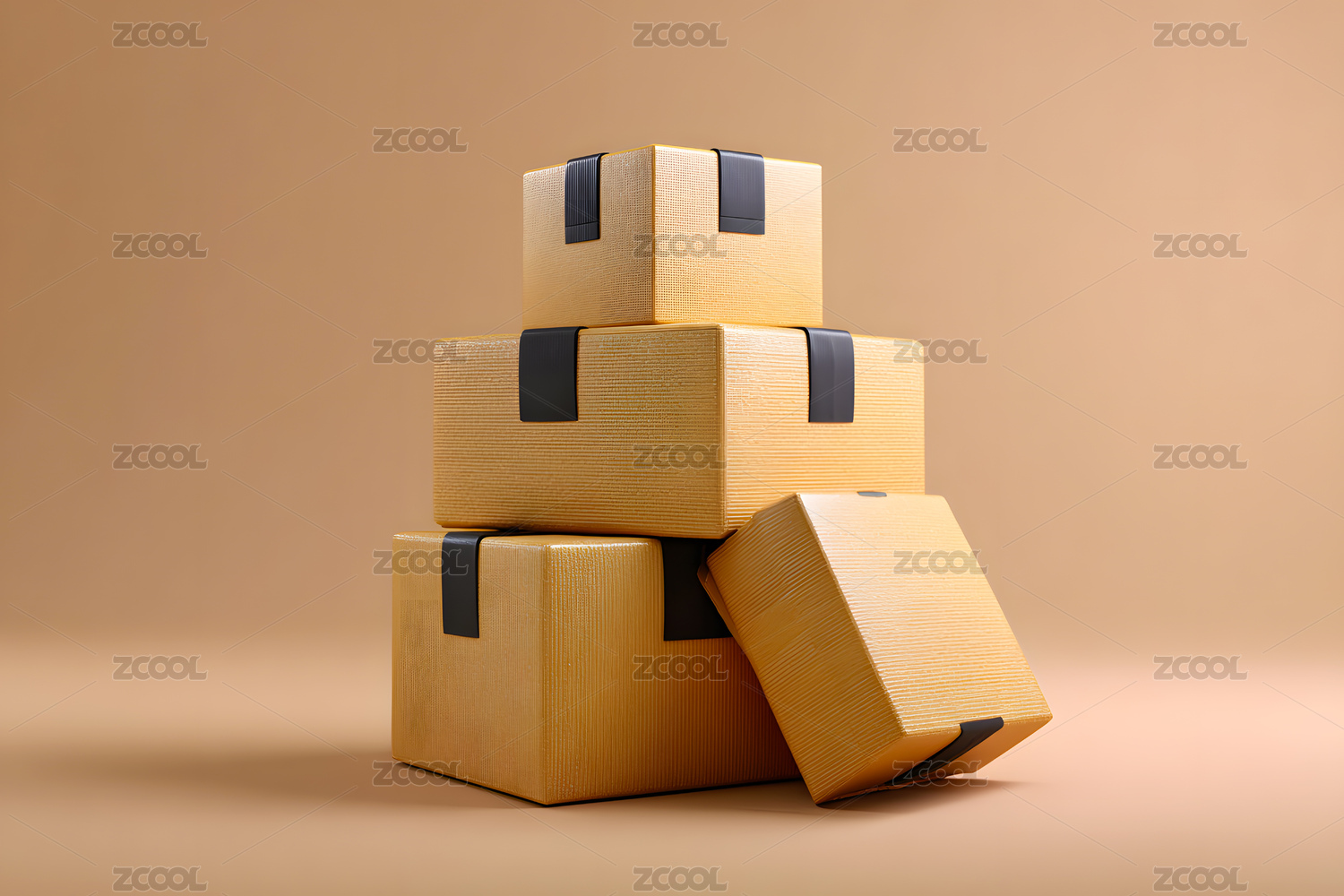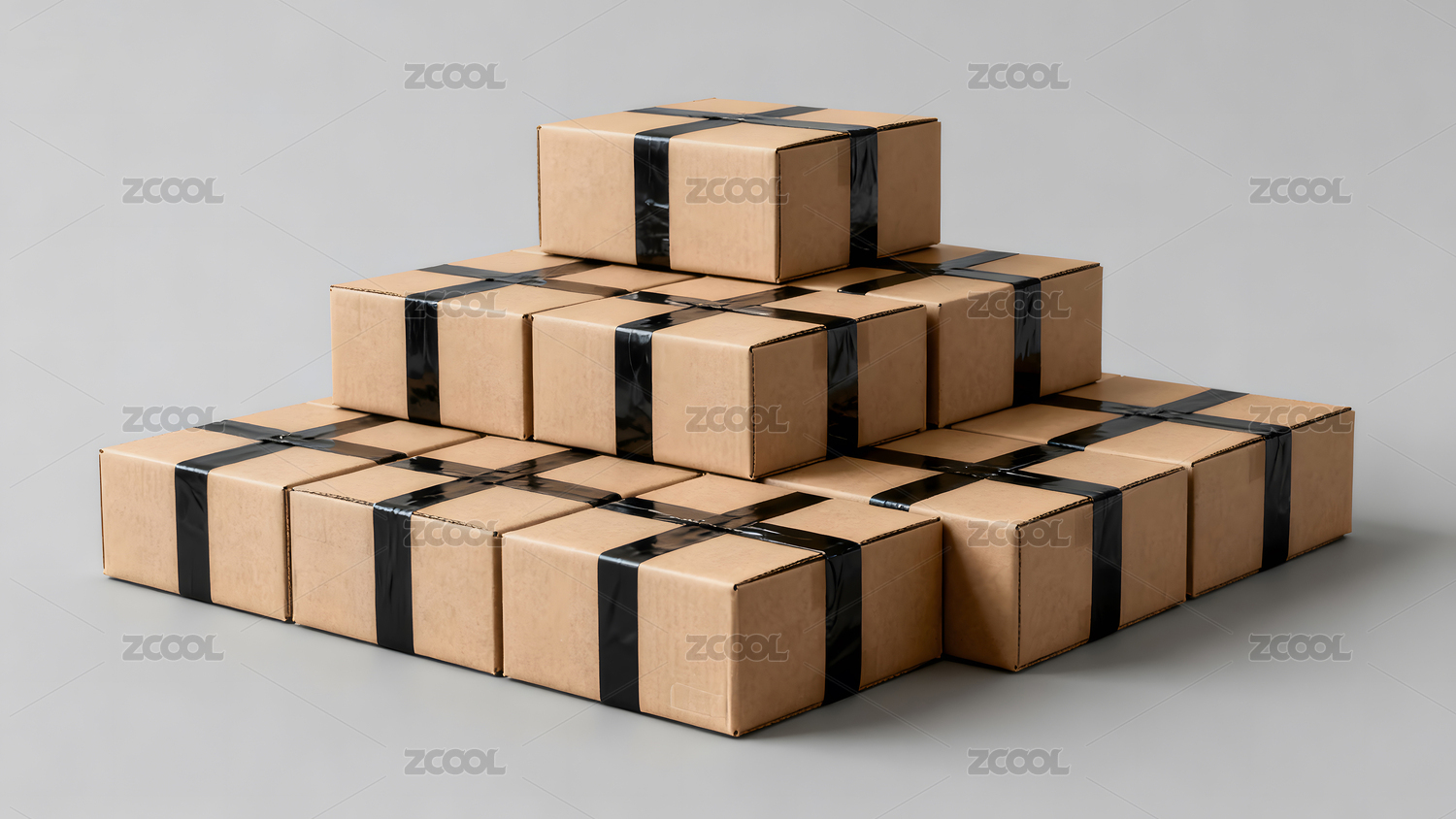 堆叠的棕色纸箱黑色胶带固定