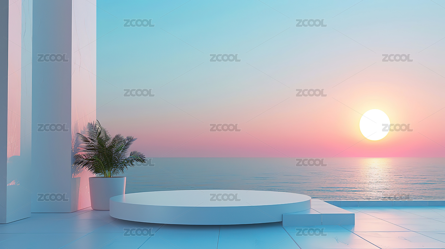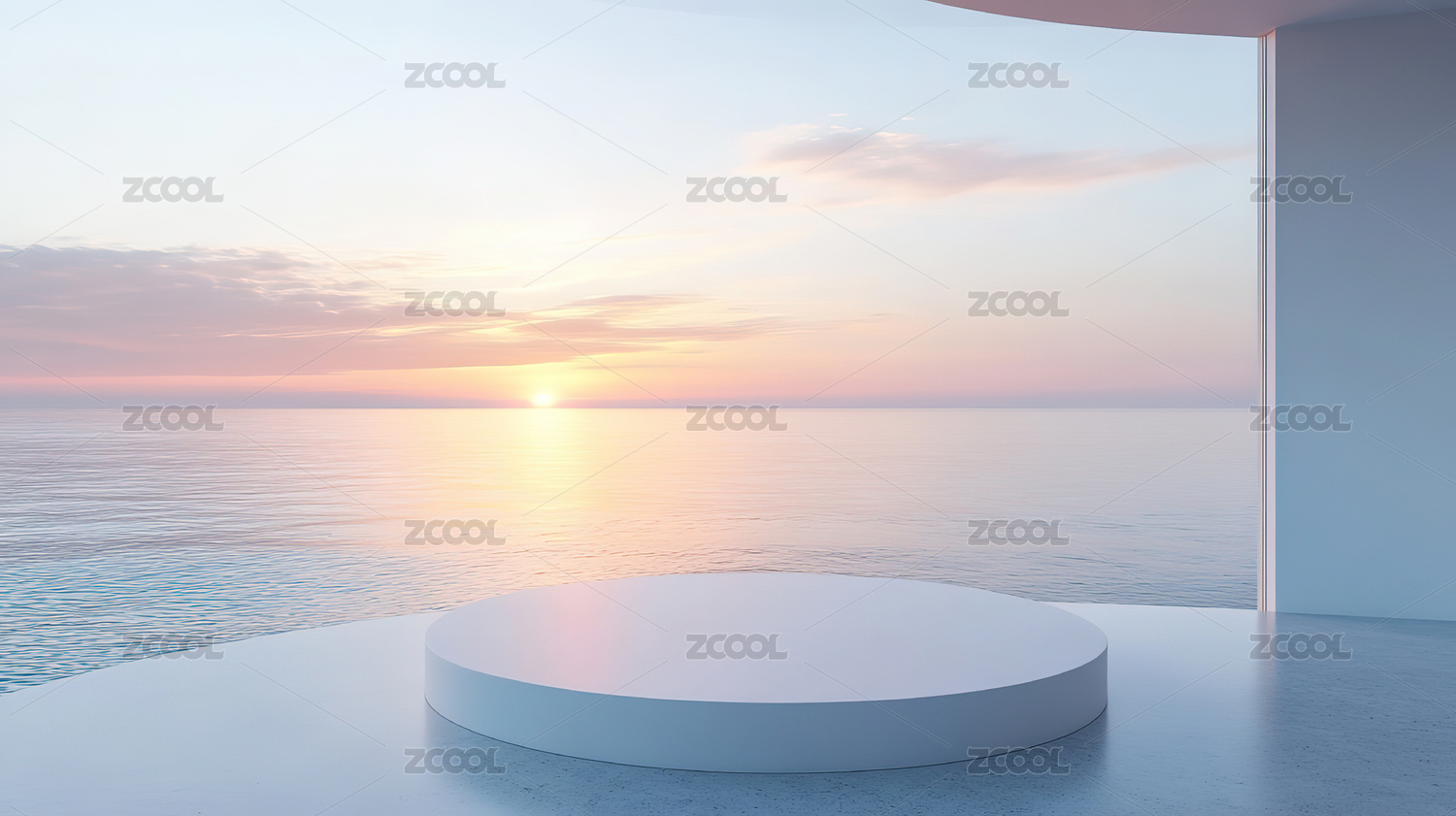 现代极简海景展示台