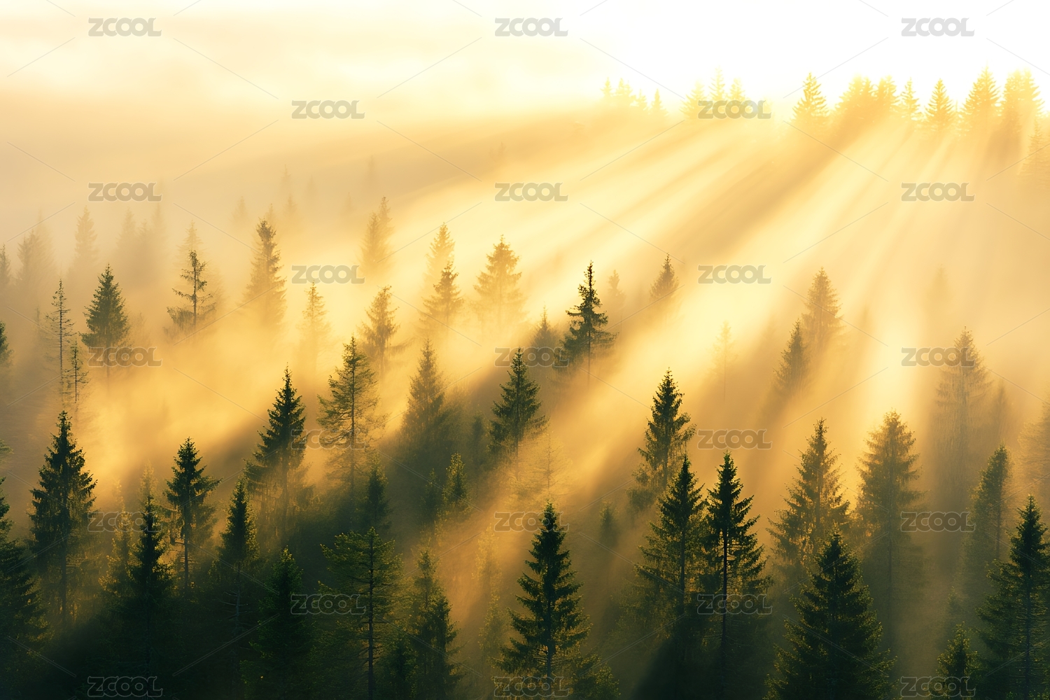 森林晨雾中的阳光