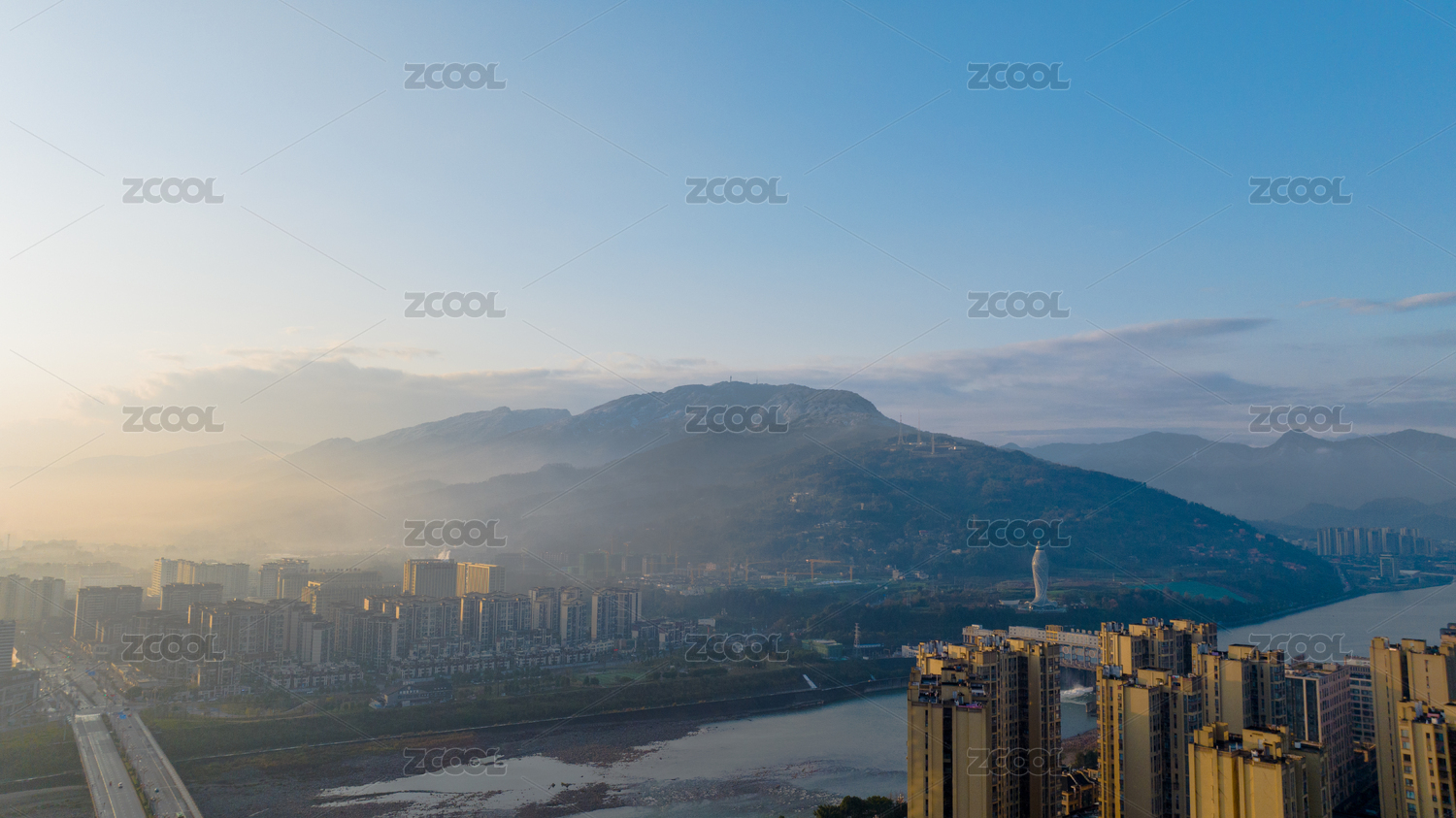 福建宁德霞浦县城日落晚霞城市建筑山水风光