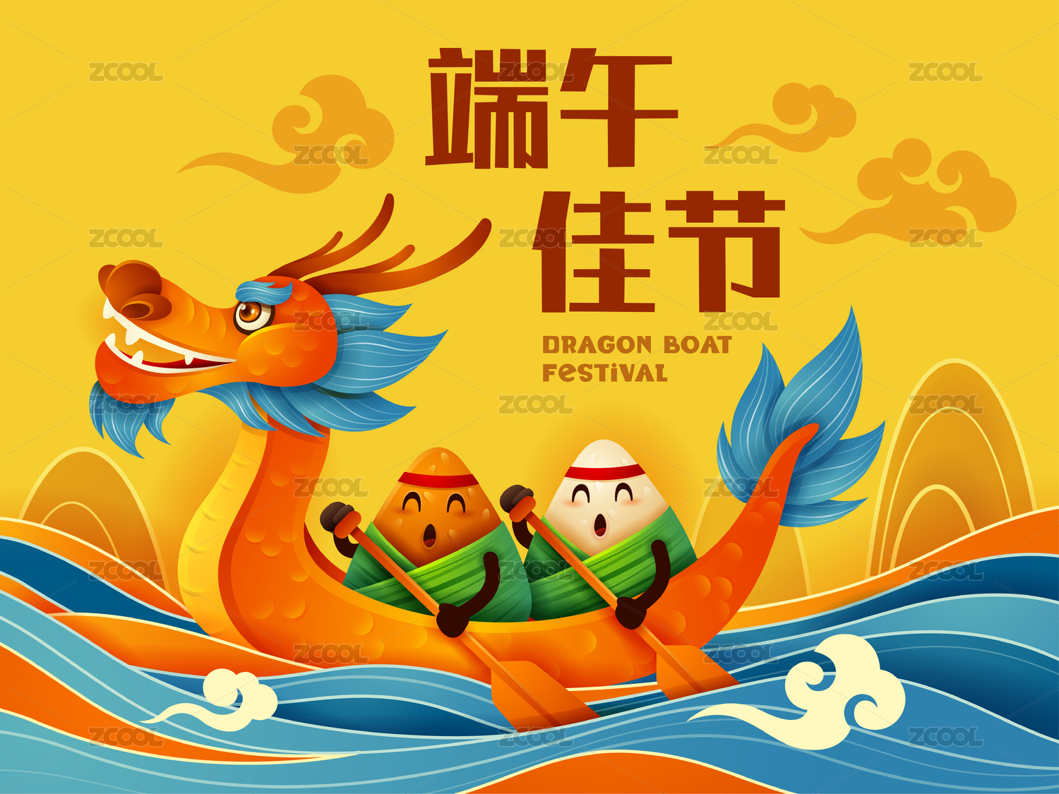 端午节,龙舟,卡通,可爱,表情,素材,海报,矢量图,线条,手绘