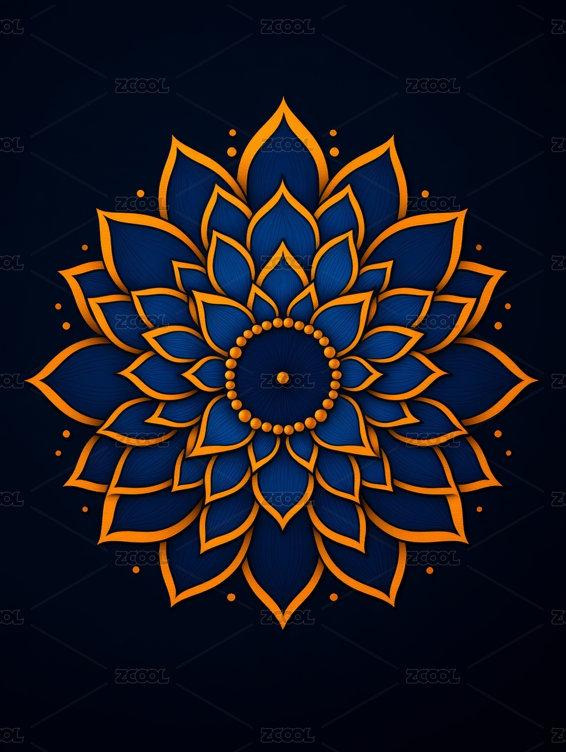 蓝色金色花卉曼陀罗图案