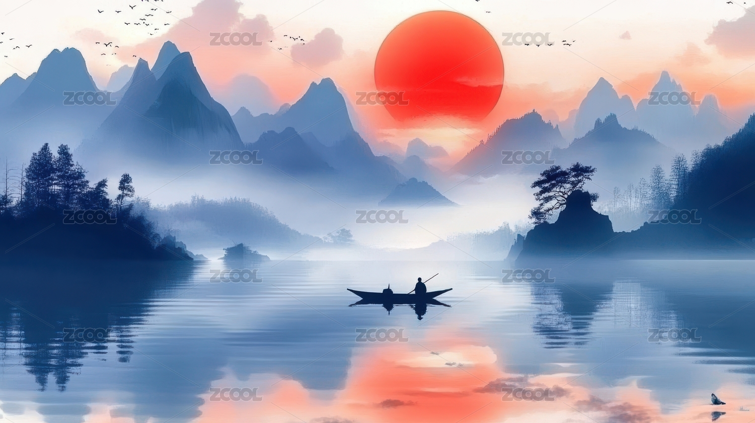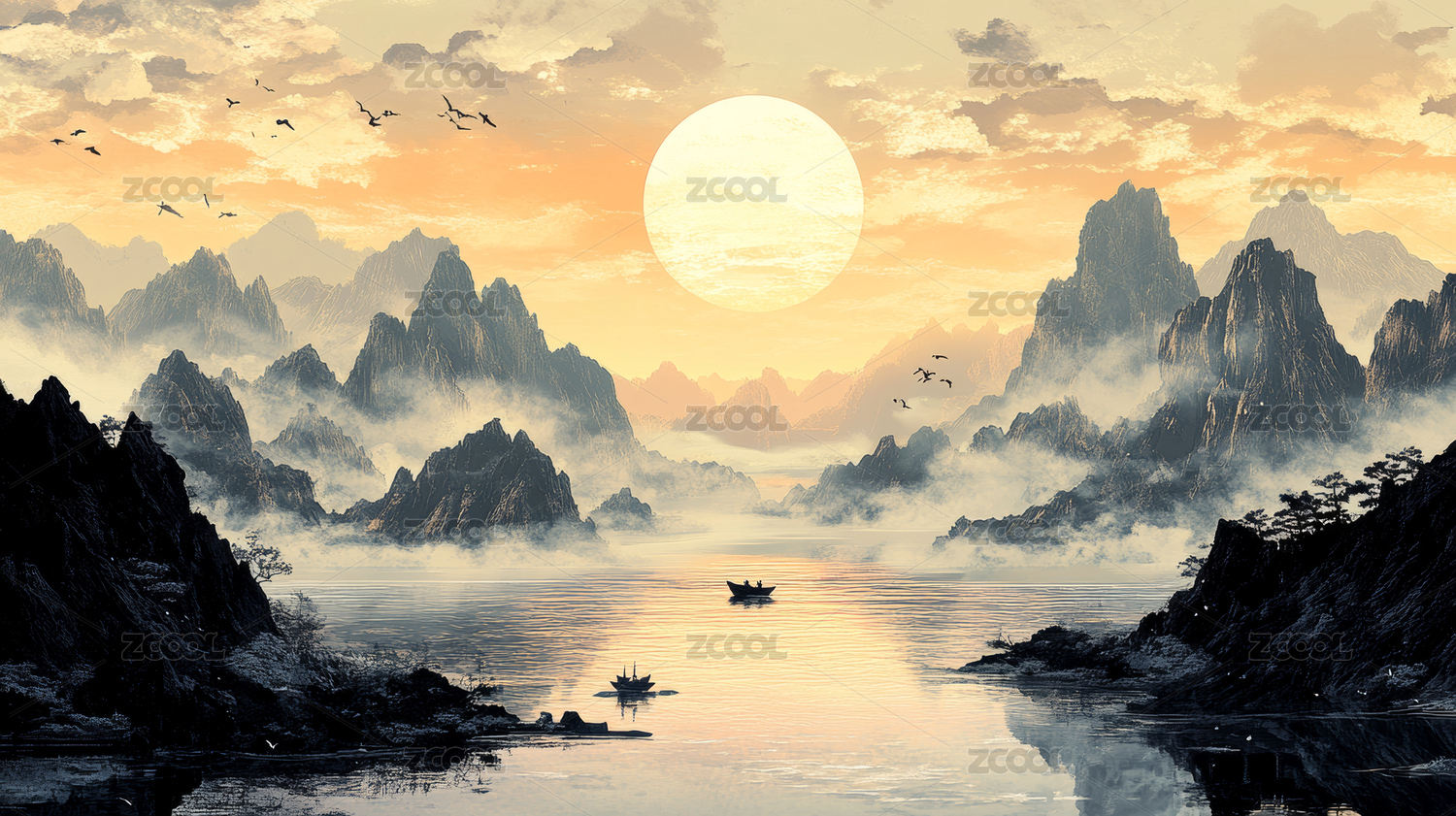 国风自然山水水墨画