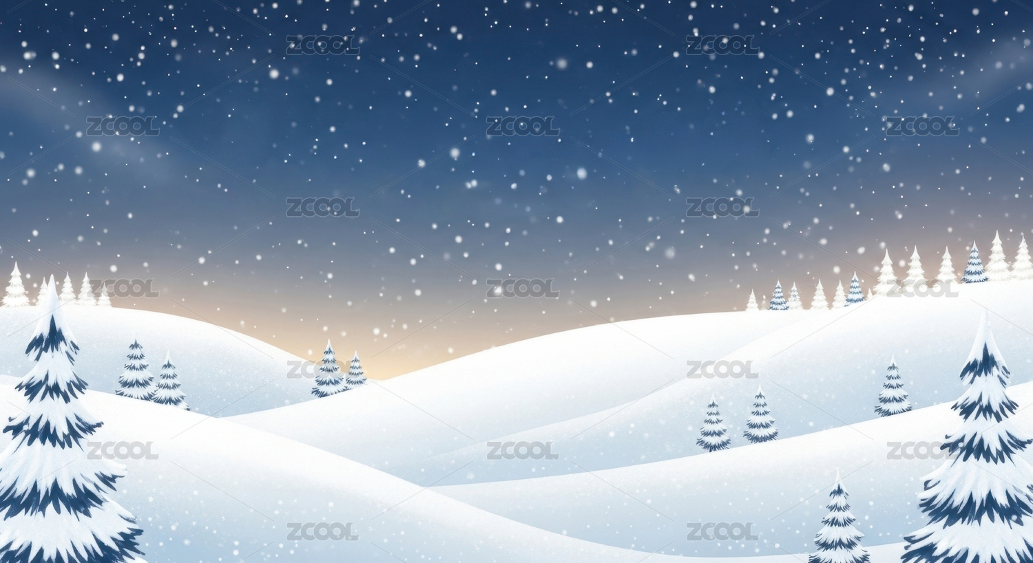 蓝色冬天剪纸风雪地树枝夜景飘雪