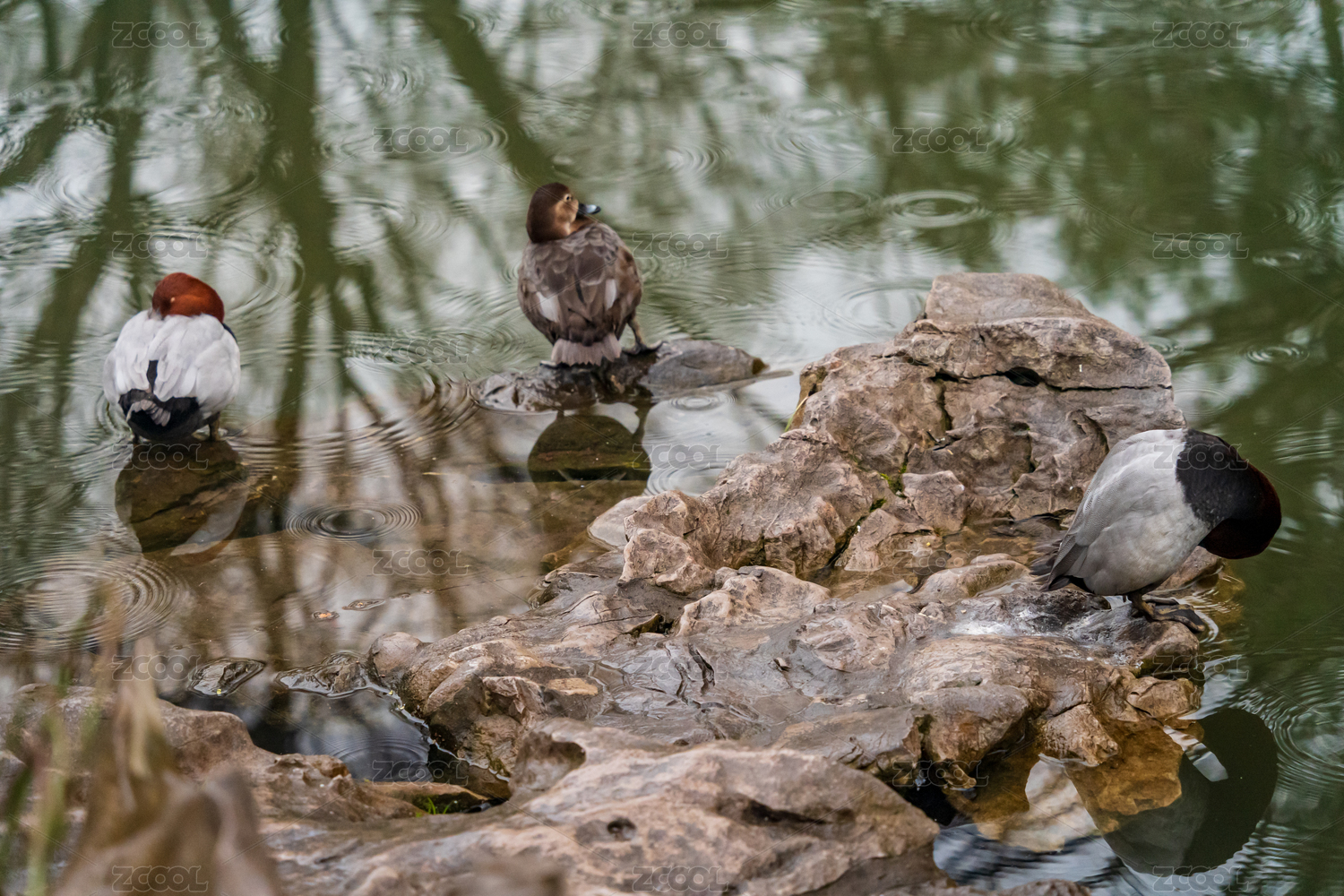 苏州拙政园景区的红头潜鸭和鸳鸯