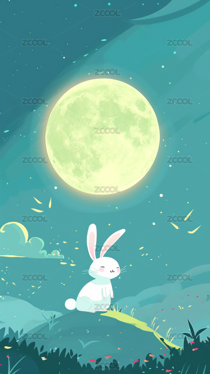 绘本风满月与兔子