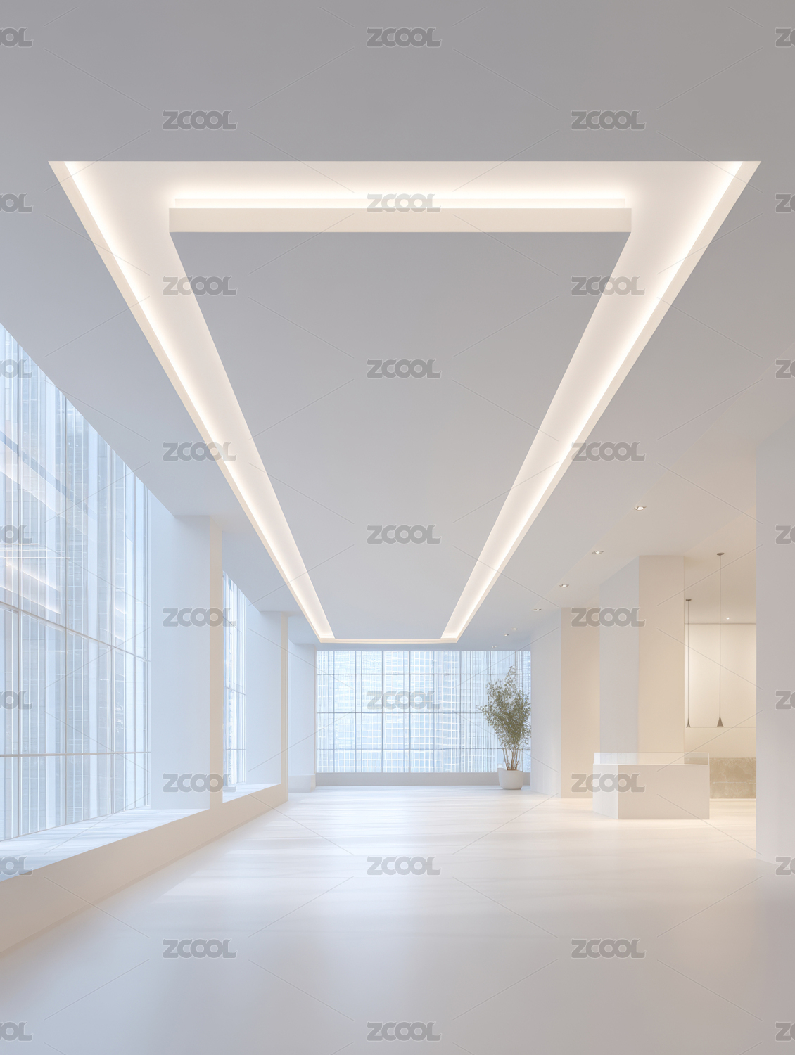 白色现代建筑室内空间设计背景