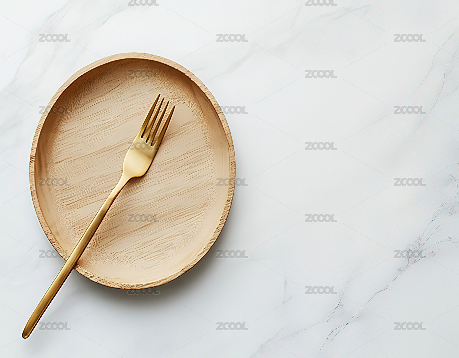 白色背景下的木质托盘配刀叉
