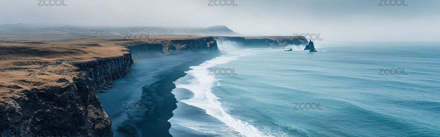 黑沙滩与雾中峭壁