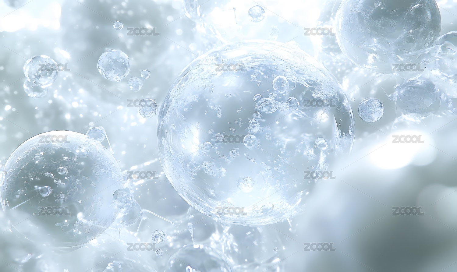 水分子泡泡微观结构精华液补水护肤电商广告