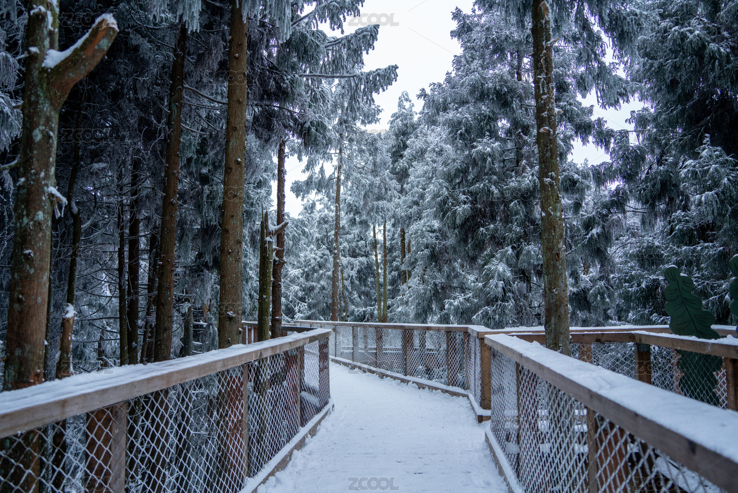 冬天雪后的北京植物园樱桃沟木栈道
