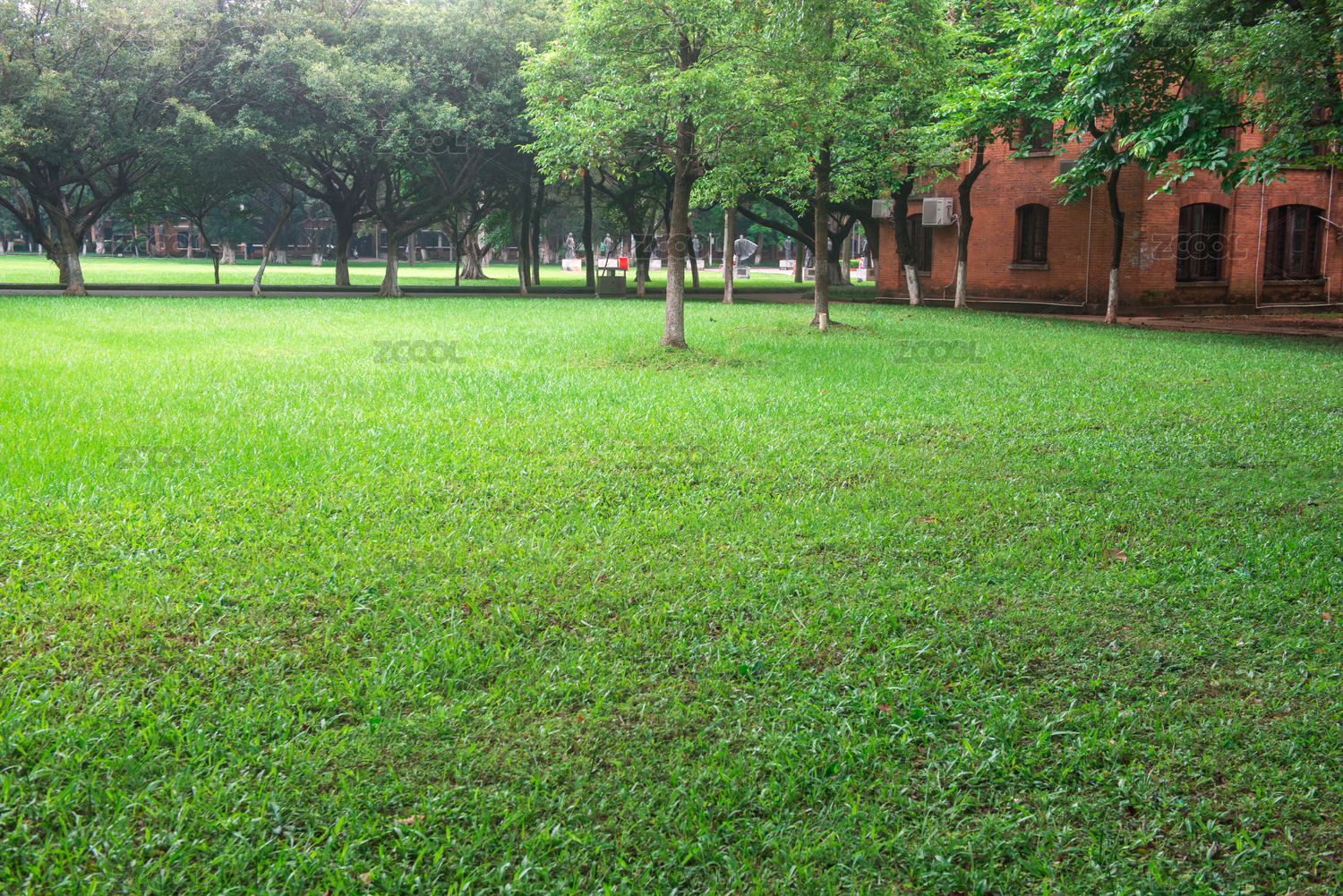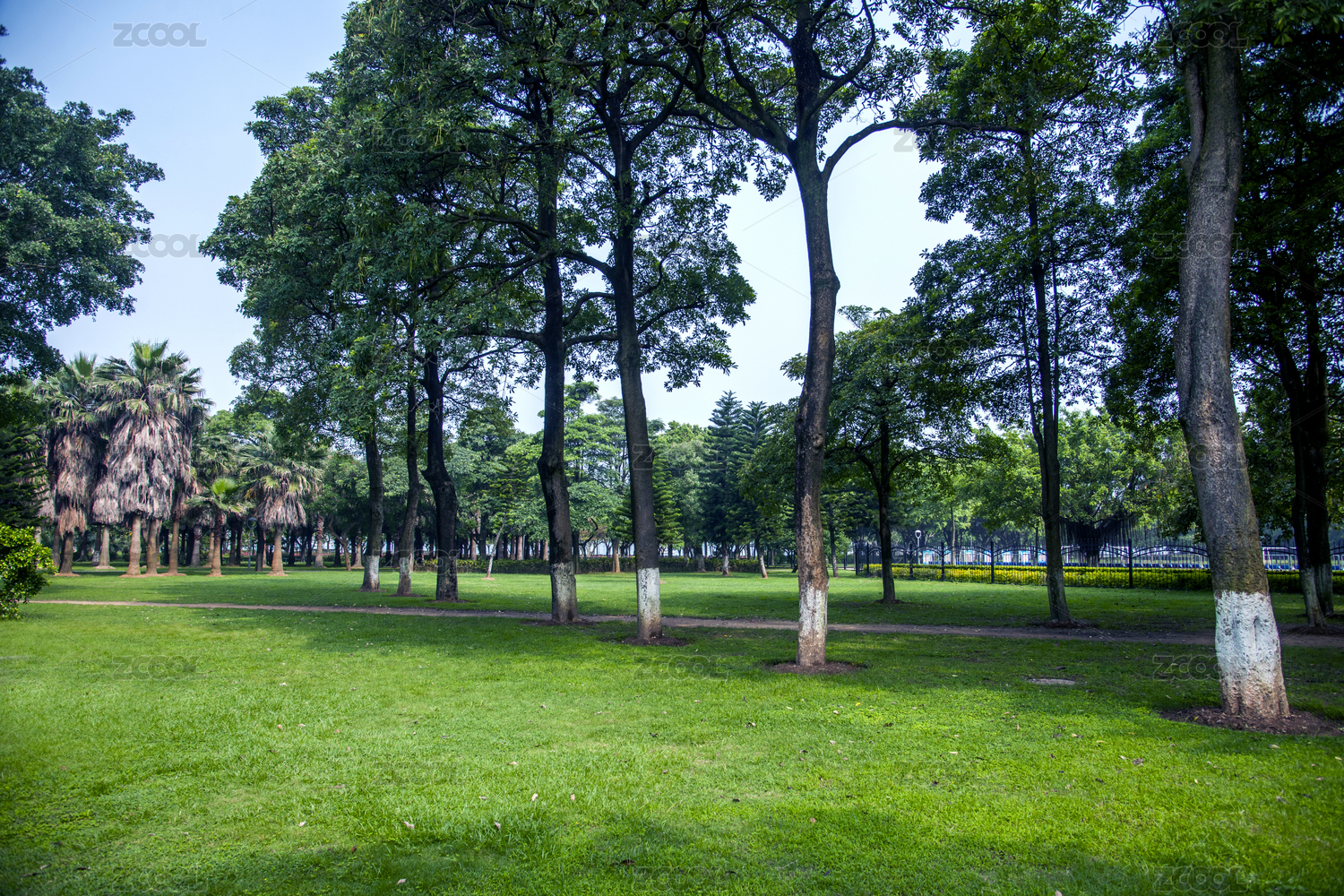 阳光照射公园绿色大草坪树木鸦片战争博物馆