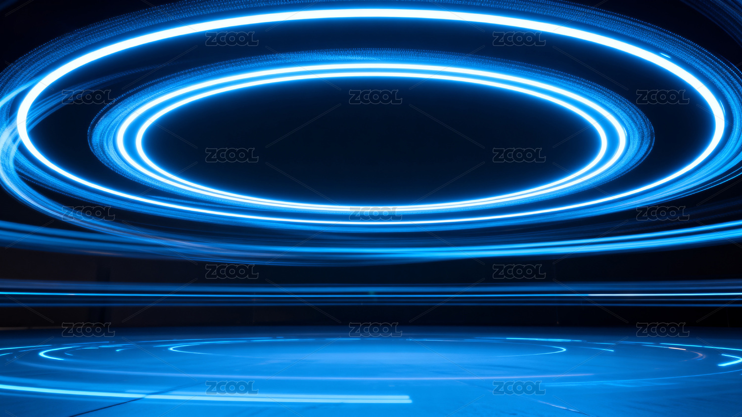 蓝色光轨环绕的抽象光影