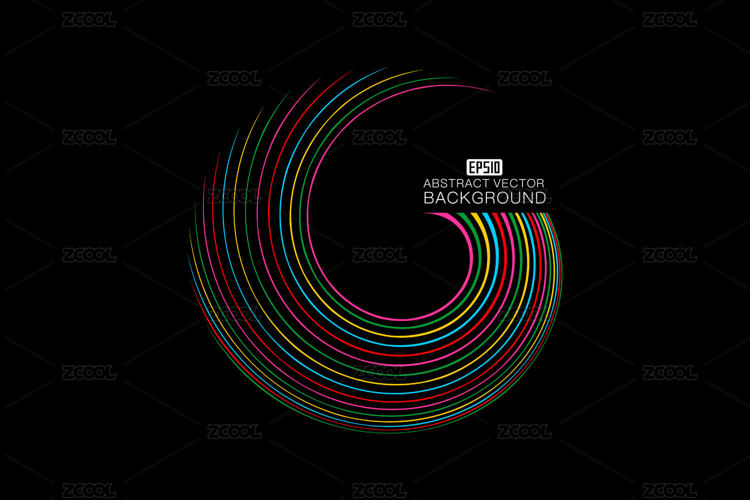 彩色线条组成螺旋发光背景,抽象矢量图