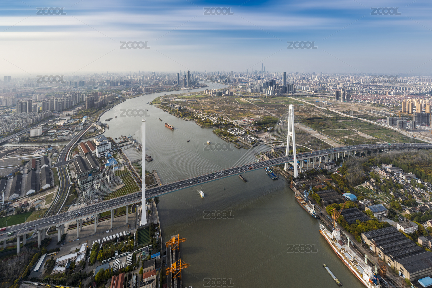 俯瞰上海徐浦大桥和黄浦江两岸城市风光
