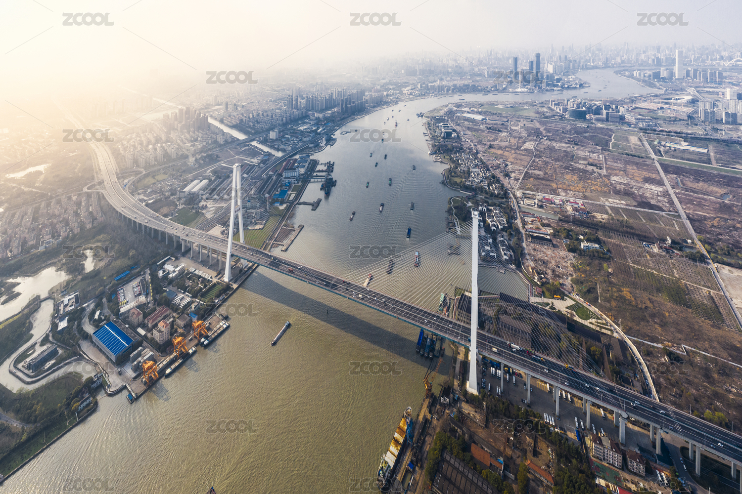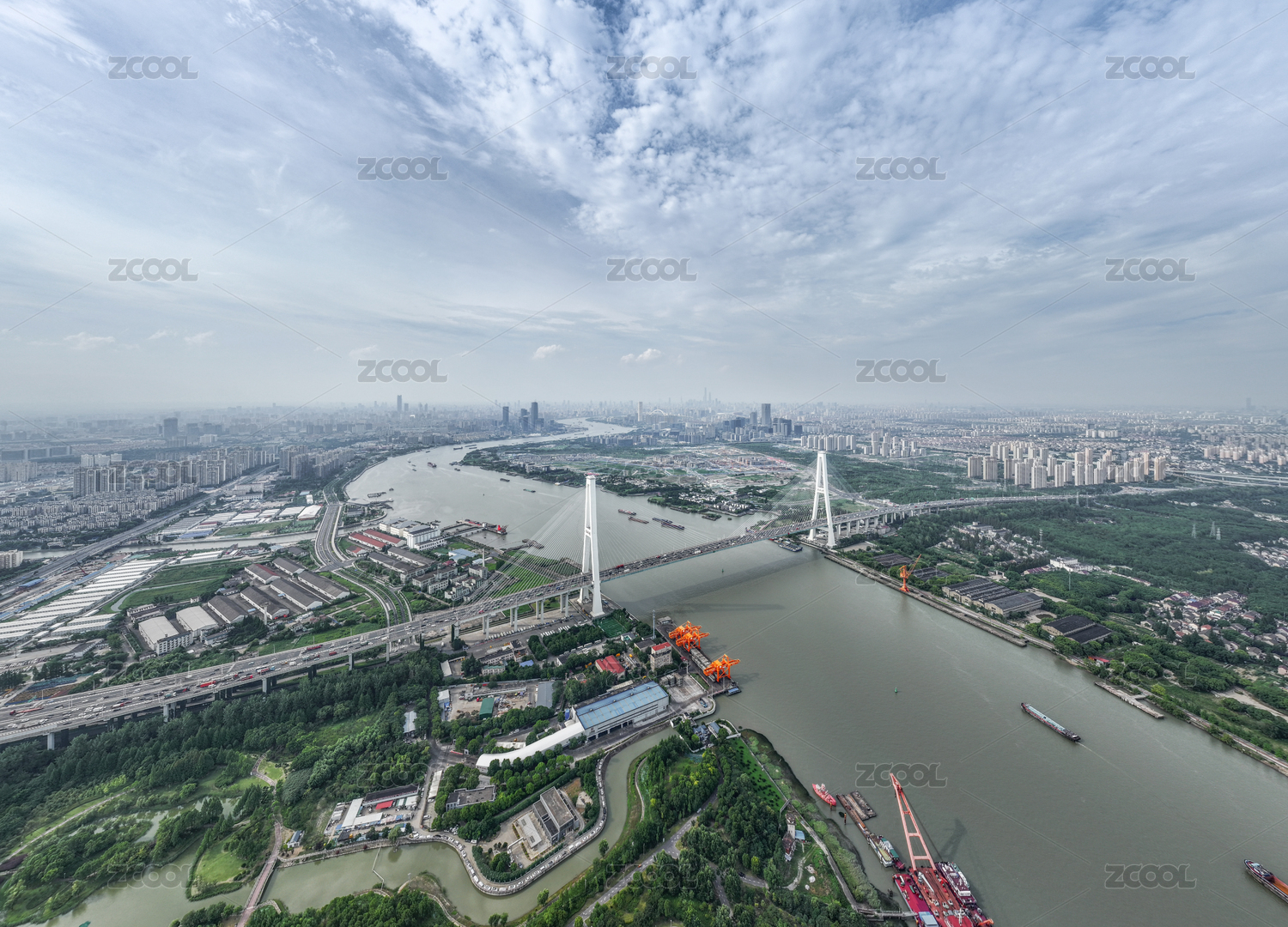 俯瞰中国上海市徐浦大桥横跨黄浦江两岸