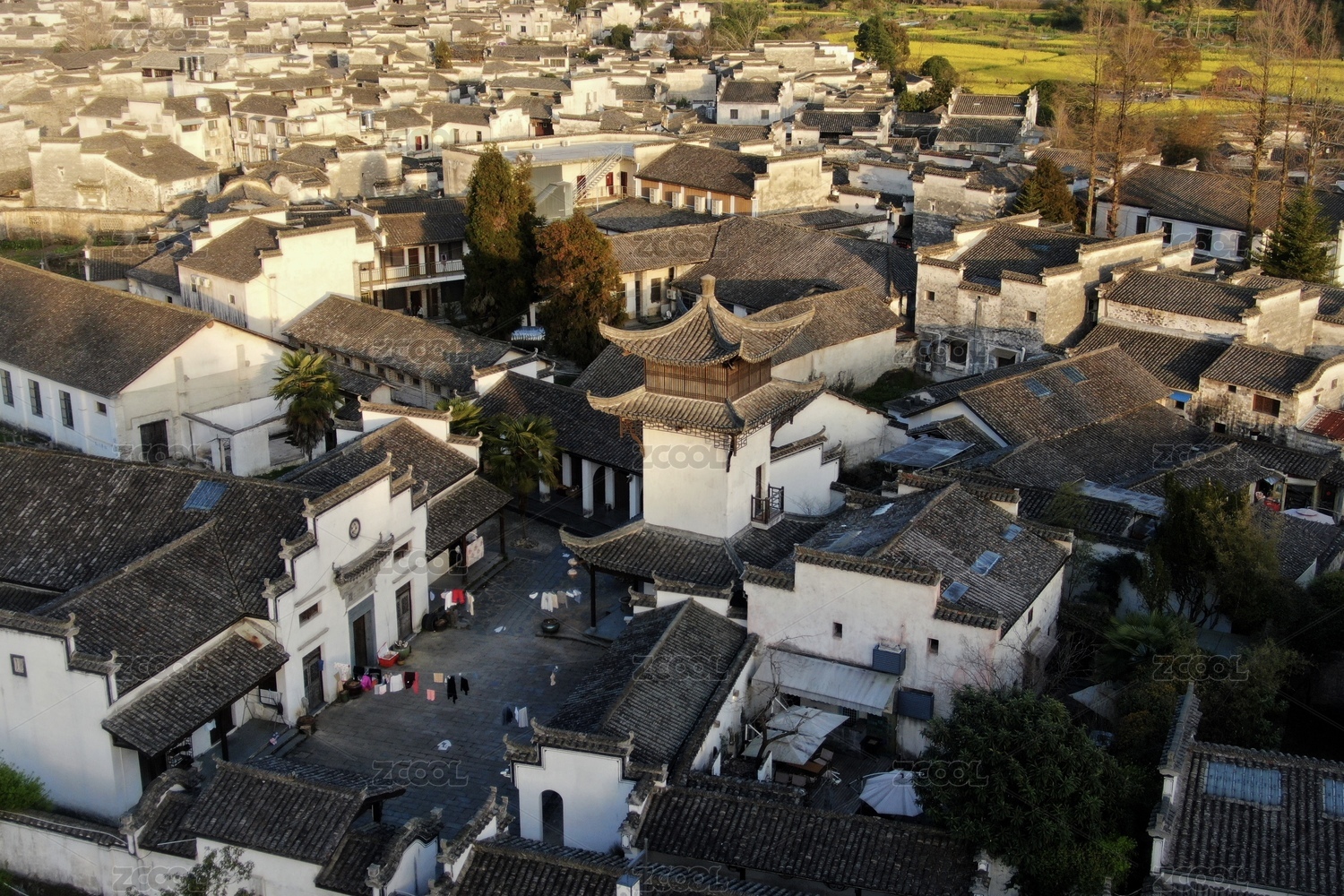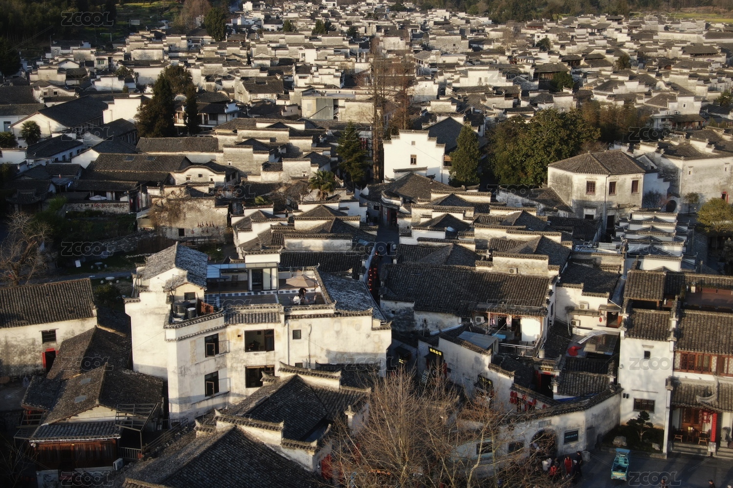 安徽黄山水墨江南宏村徽派建筑群秋色航拍