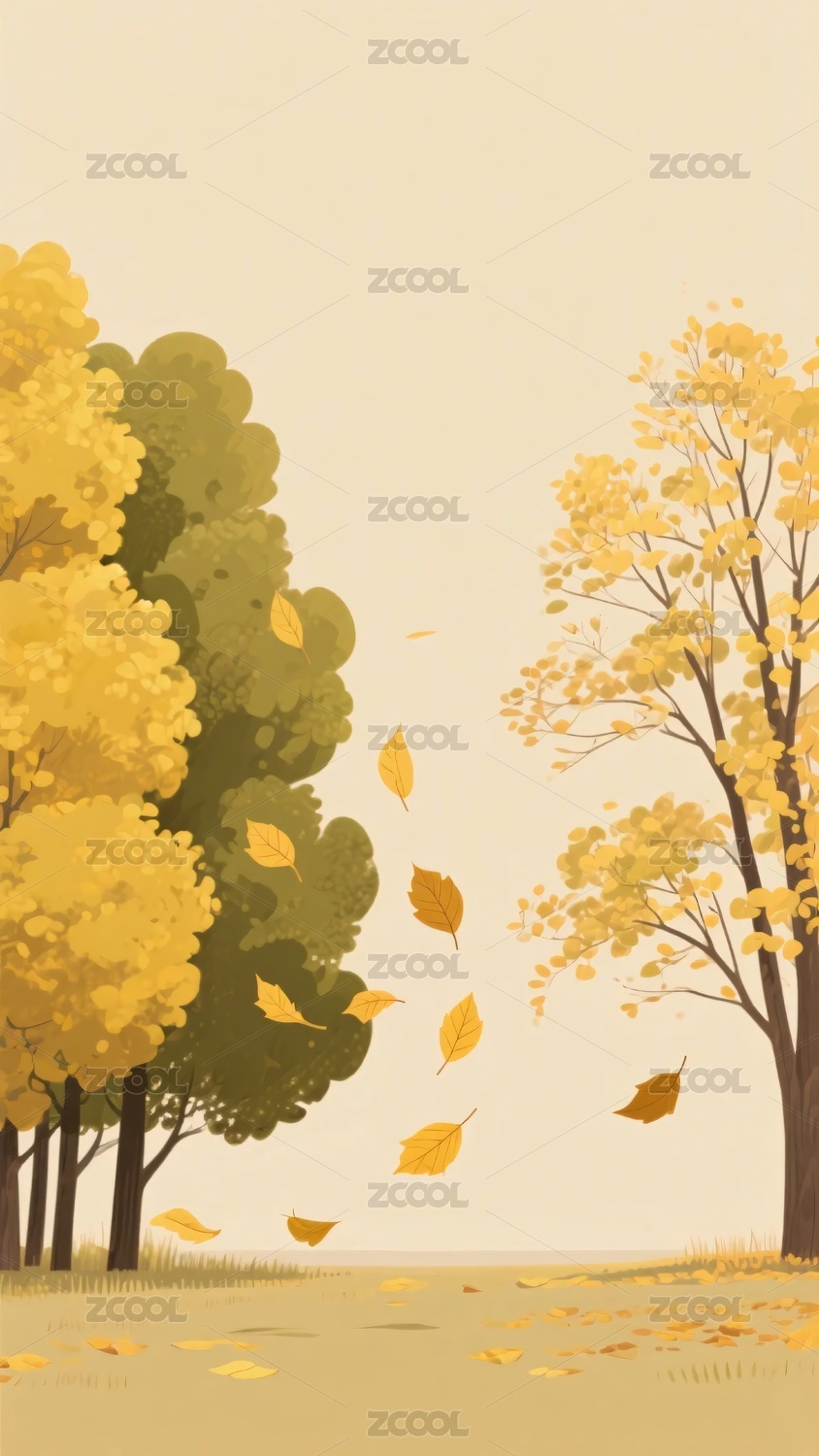 一个树在绿色山丘立秋秋分节气3D卡通插画